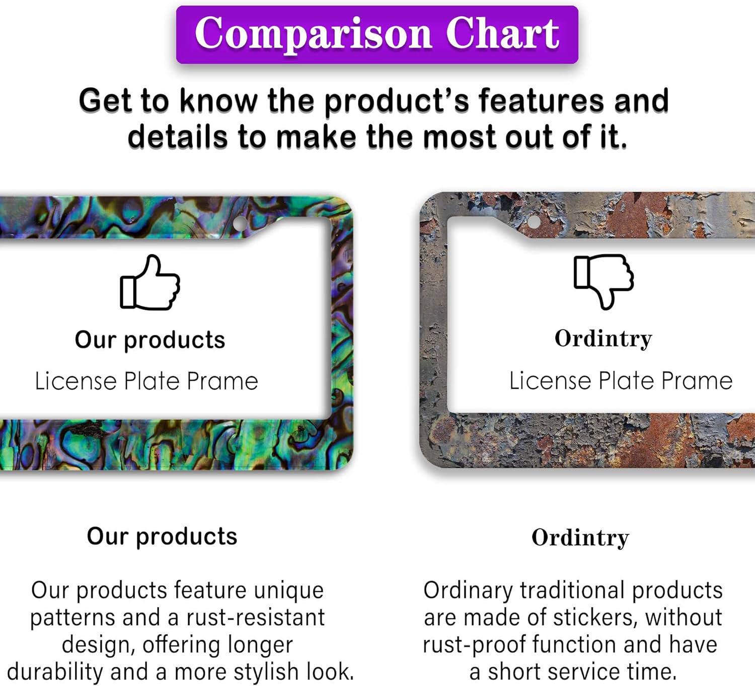 License Plate Frames Multicolor Fun License Plate Frame Cover Faux Abalone Texture Universal Aluminum Car Accessory 2 Pack with Screw Covers Set