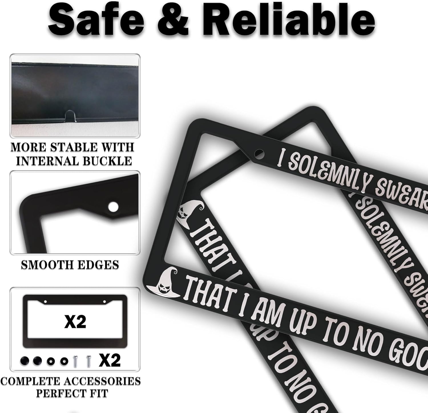 License Plate Holder Black and White License Plate Frames I Solemnly Swear That I Am Up to No Good Universal Aluminum Car Accessory 2 Pack with Screw Covers Set