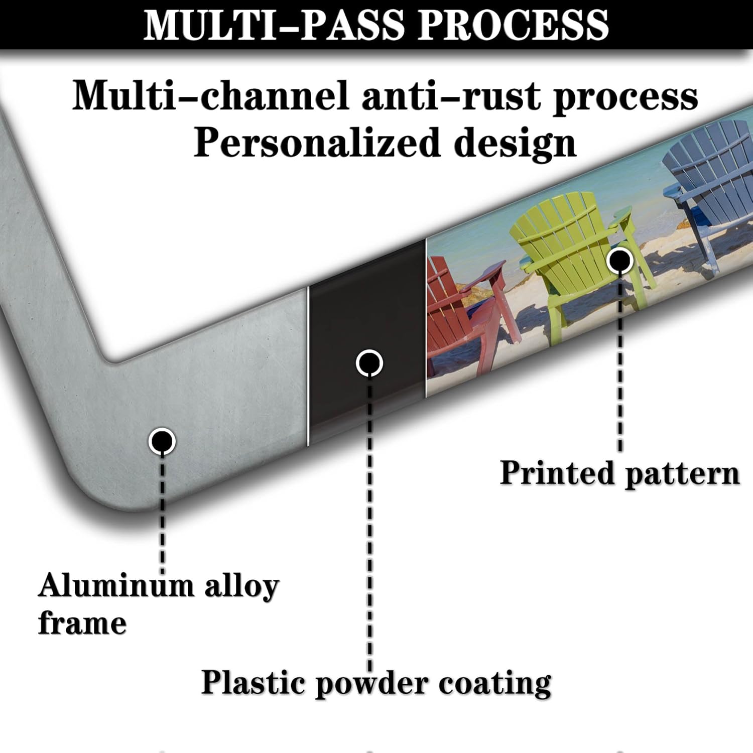 License Plate Frames License Plate Frame Beach Loungers Colorful Chairs in Tropical Summer Palm Tree Aluminum Metal Car Accessory 2 Pack with Screw Covers Set