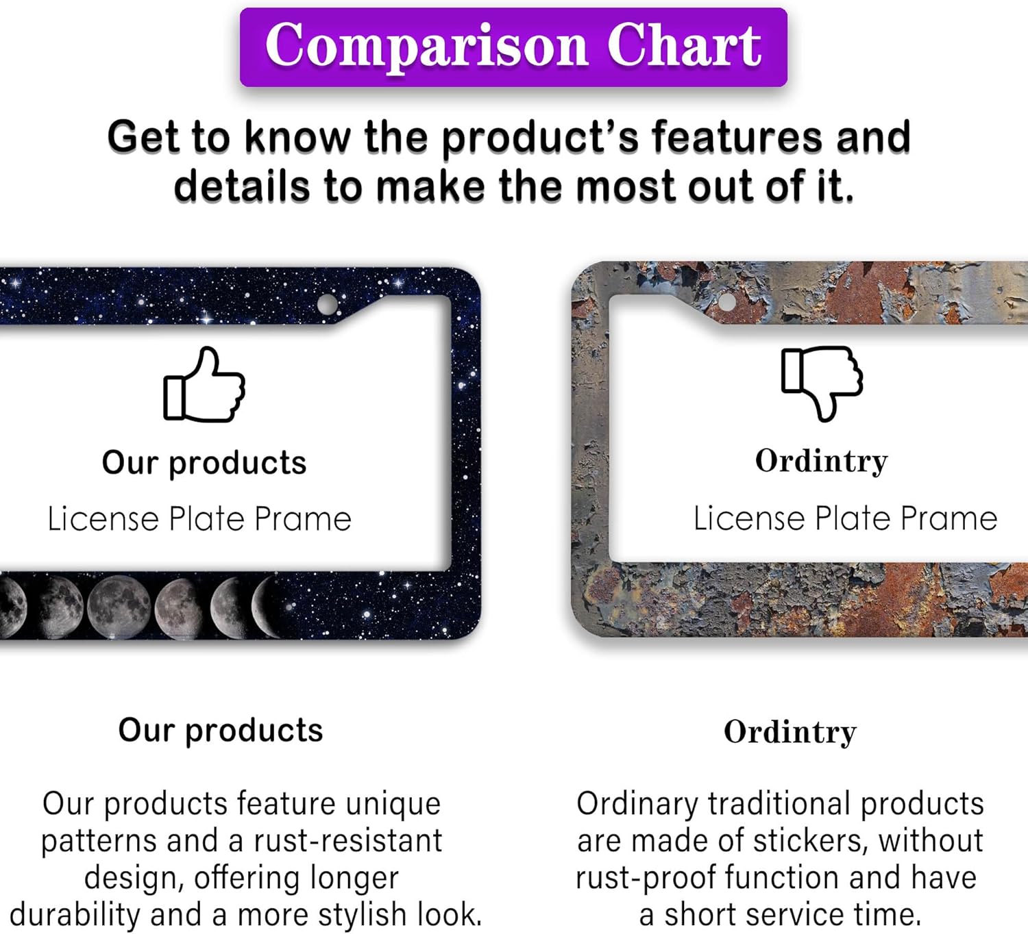 Automotive Exterior Accessories Black and White License Plate Frames Celestial Moon Phases Aluminum Metal Car Accessory 2 Pack with Screw Covers Set