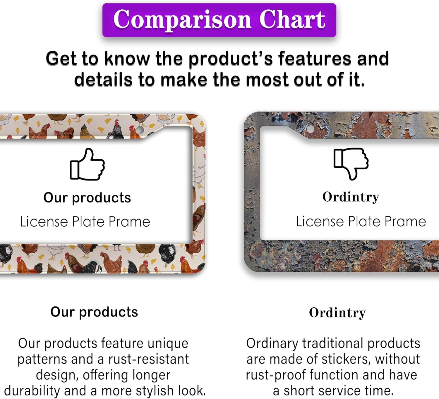 License Plate Covers for Women Multicolor License Plate Frames for Men Chicken Flower Aluminum Metal Car Accessory 2 Pack with Screw Covers Set
