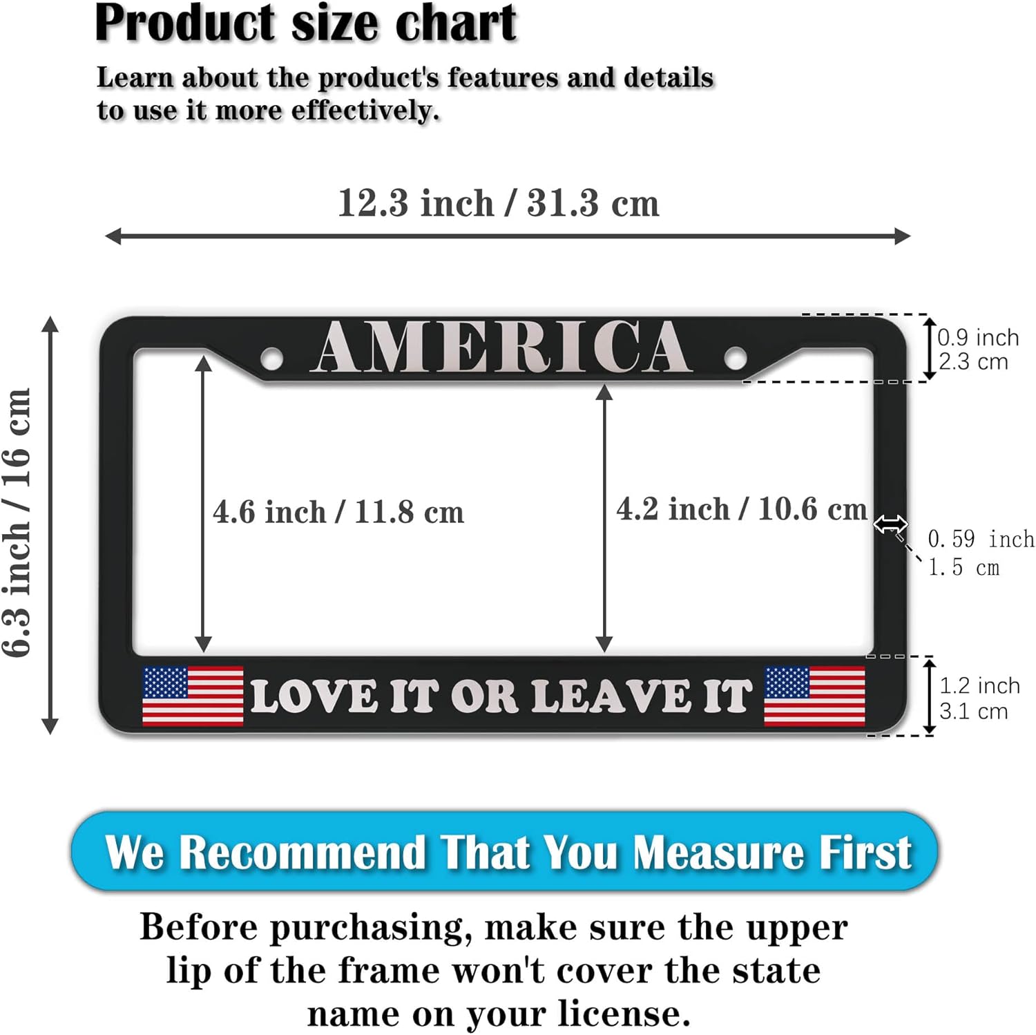 License Plate Frames Black and White License Plate Frame America Love It or Leave It USA Flag Aluminum Metal Car Accessory 2 Pack with Screw Covers Set