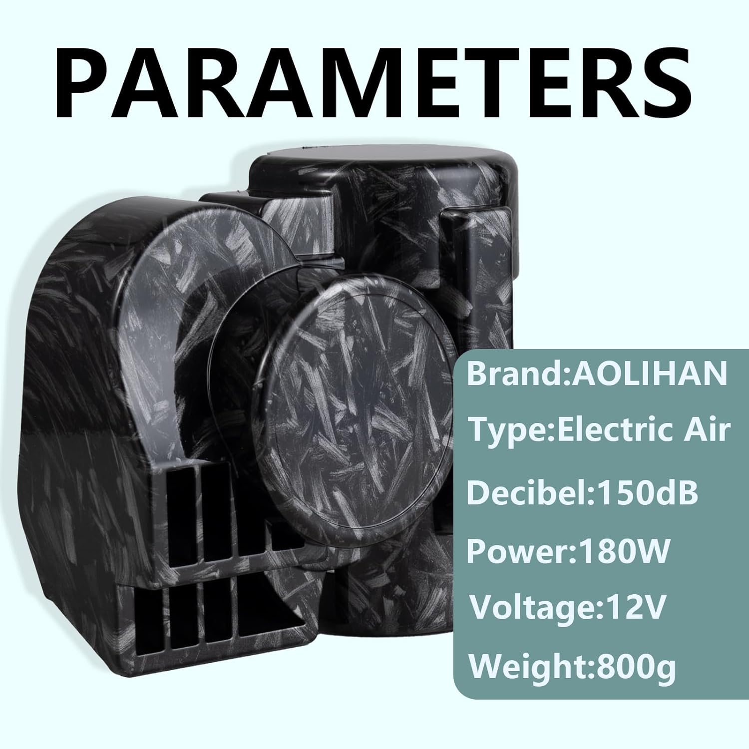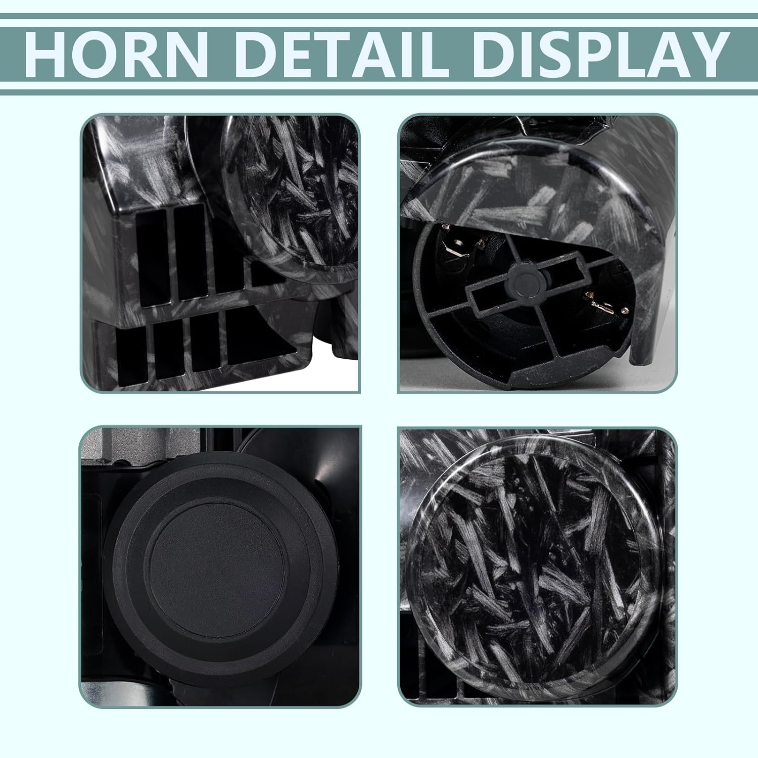 Loud Car Horn with Relay,150dB Train Horn for Motorcycle,12V Air Horns for Car,Black & Gray Personalized Pattern,Dark Style Motorcycle Waterproof Snail Horns