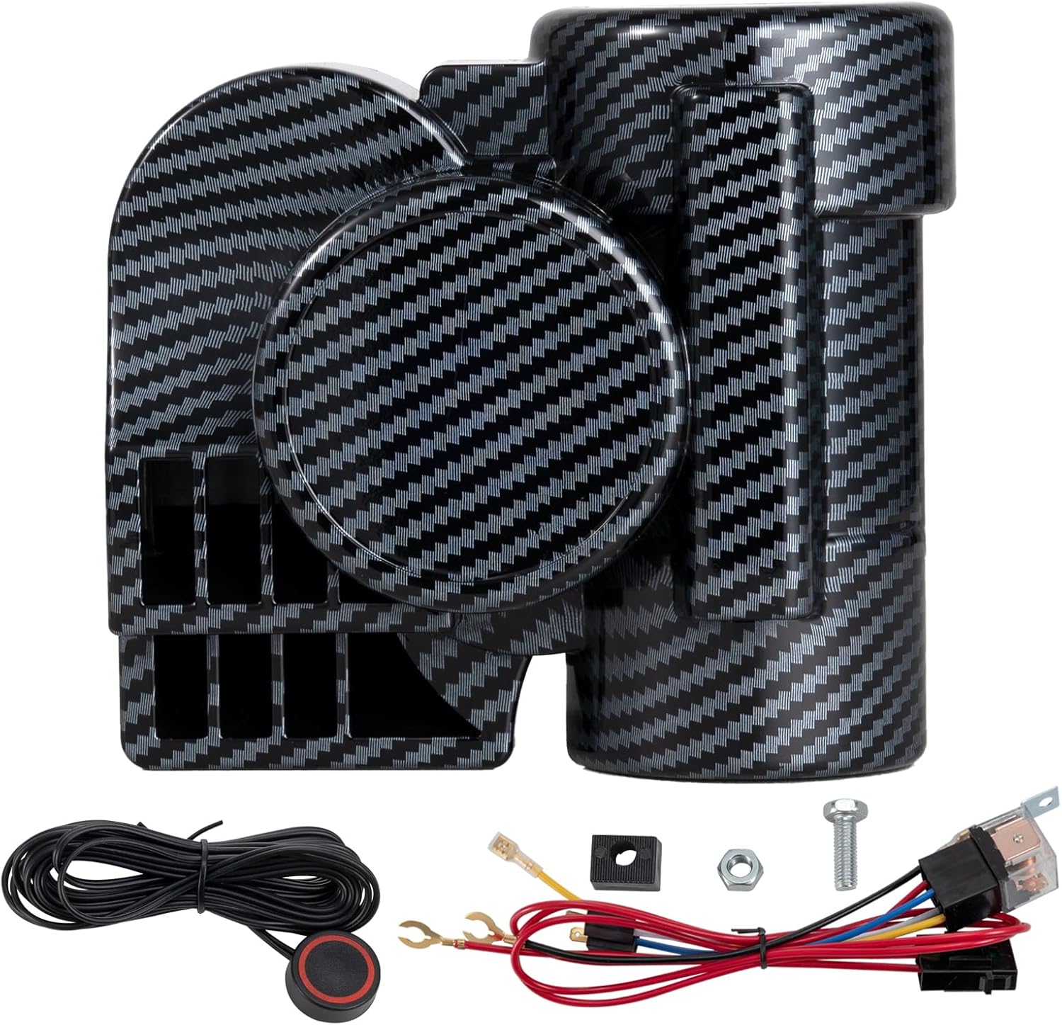 - ăEasy to Set UpăThe horn kit comes with everything you need: a 12V horn, screws, wires, fuse,and button. You donât have to buy anything else. Just plug it in and youâre done