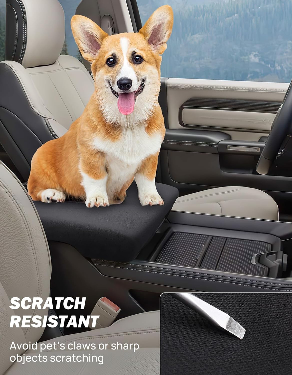- FULL PROTECTION - Wide enough to cover the entire top and side of the console to provide full protection. Anti-scratch, effectively avoid dog paws, fingernails, or key scratches, avoid pet footprints/saliva, sweat arm, and dirt soil the armrest