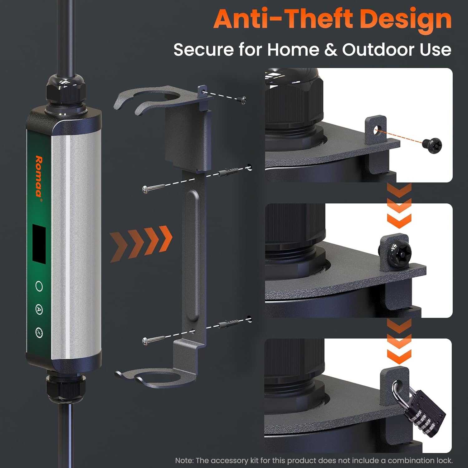 - Modular Deployment | Portable + Wall-Mount Ready: Portable level 2 ev charger includes carrying bag, wall bracket, and cable hook—transform your Romaa charger into a fixed garage station or a mobile backup unit. Built for home users, fleet operators, or EV drivers on the move