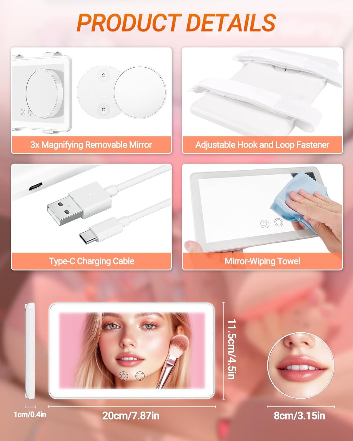- 🫧【3 Modes of Lighting & Dimmable】LED car mirror has 60 uniform, glare-free LED lamp beads (30 white lights + 30 yellow lights), which are 40% brighter than ordinary bulbs and consume 60% less energy. Short press to switch between three light colors: white, yellow, white and yellow, long press for infinite dimming. 2700-6500 K color temperature is equivalent to outdoor sunlight, so your makeup looks natural and flawless.