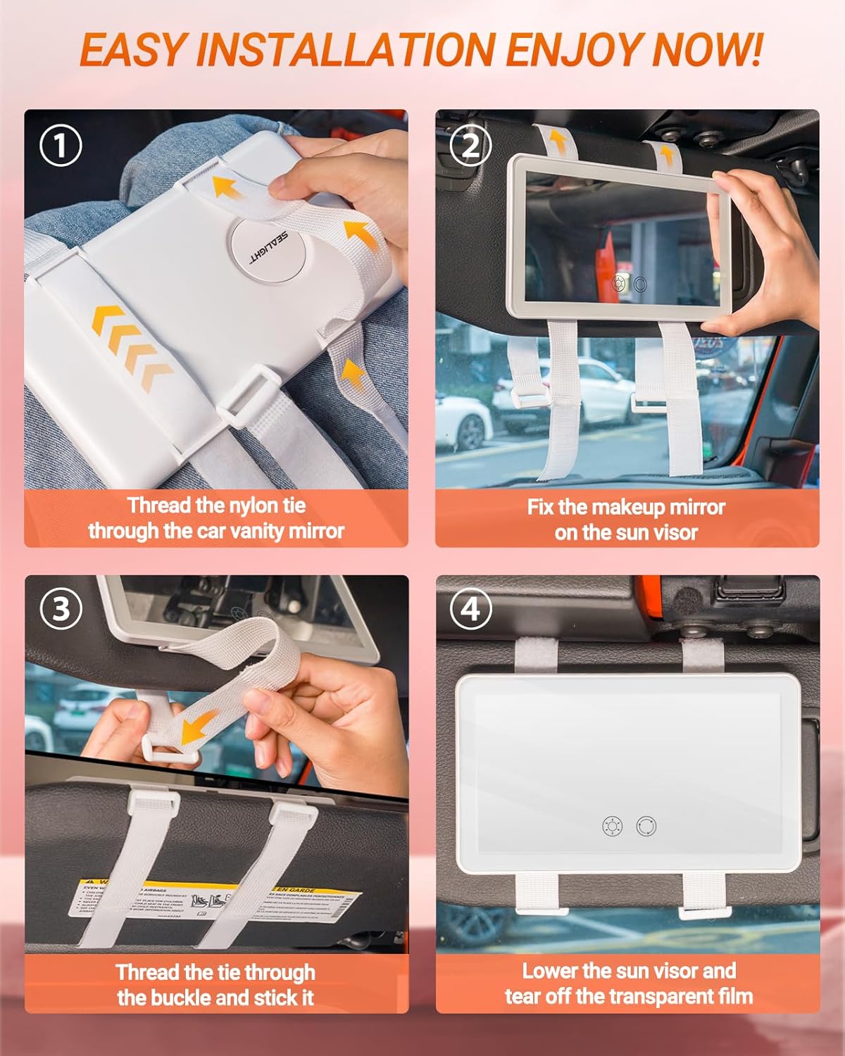 - 🫧【Enhanced LED Car Visor Mirror】Car accessories for women is made of high ABS+4K high-definition mirrored glass. It is not only larger than traditional mirrors, but also equipped with lights to provide you with a brighter and clearer makeup environment. It can not only help you easily complete the perfect makeup in the car, but also make it easier for you to organize your appearance and instruments, while improving your visual experience while driving.