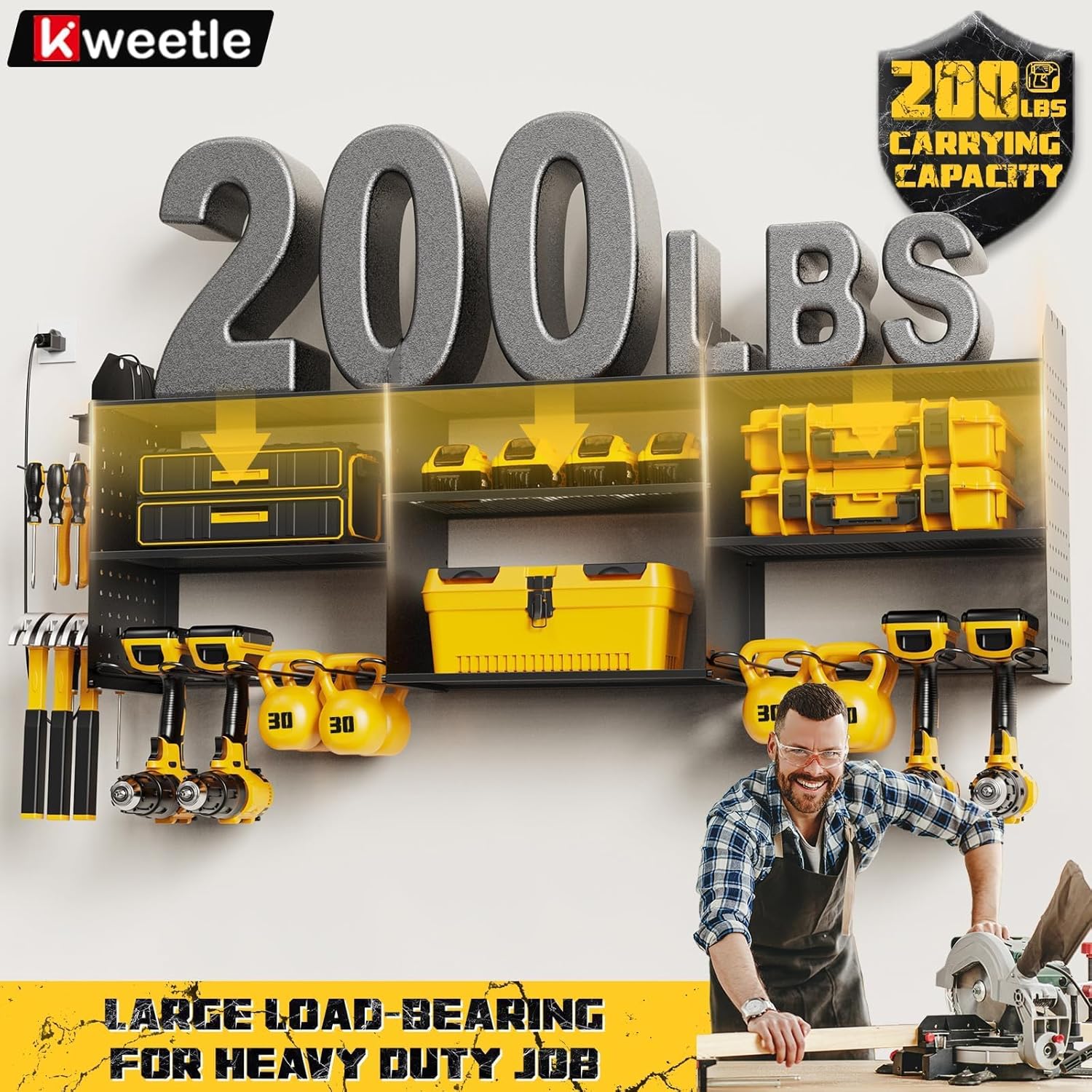 - 【MAXIMUM WEIGHT UP TO 200 LBS】 The power tool organizer wall mount is crafted with a strong alloy frame and double-layered metal plates, ensuring long-lasting durability and it has a weight capacity of up to 200lbs It serves as a versatile and dependable holder for a wide range of tools and accessories, making it an essential addition to any workspace.