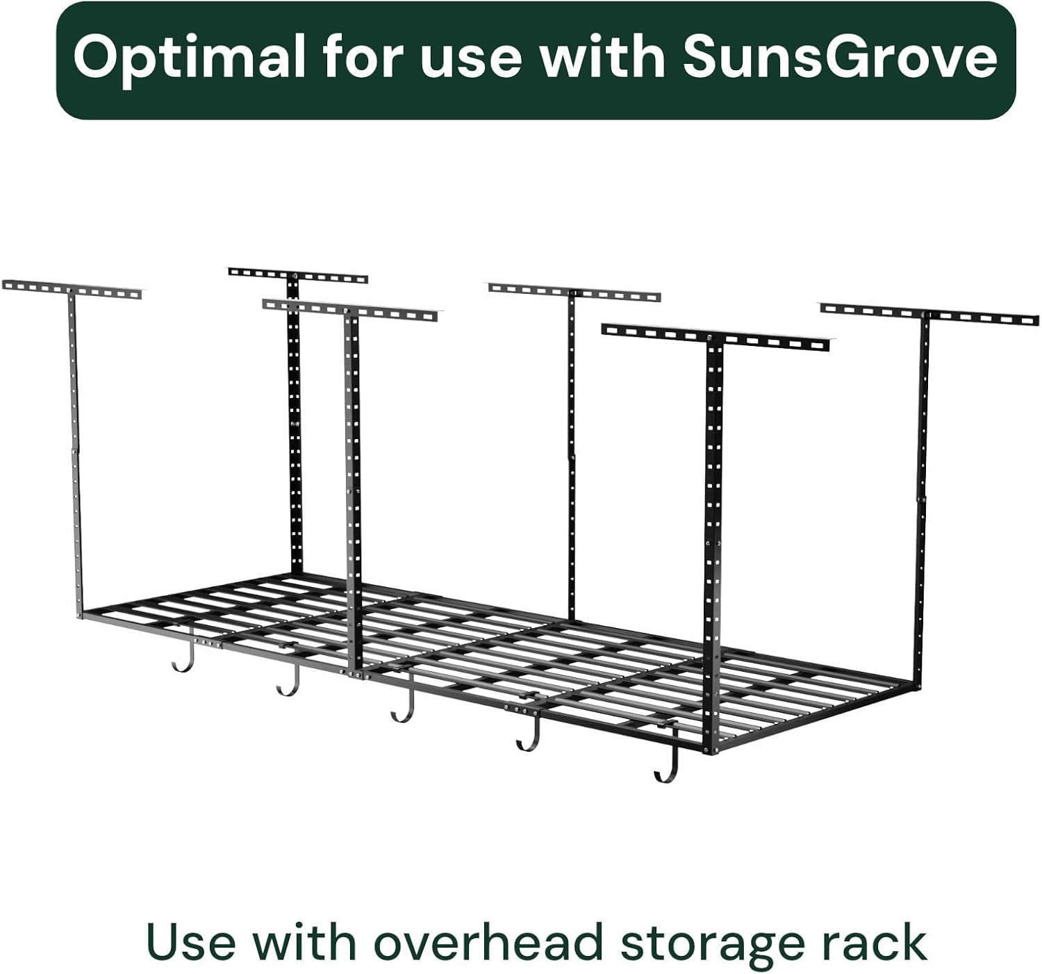 - Effortless Installation and Versatile Hanging: Specially designed for easy installation on SunsGrove warehouse ceilings storage racks or wall shelves, this ceiling bike rack from SunsGrove allows you to effortlessly suspend items like bicycles, ladders, and cleaning tools. Its intuitive design ensures quick setup without tools, making it a user-friendly addition to your storage solutions