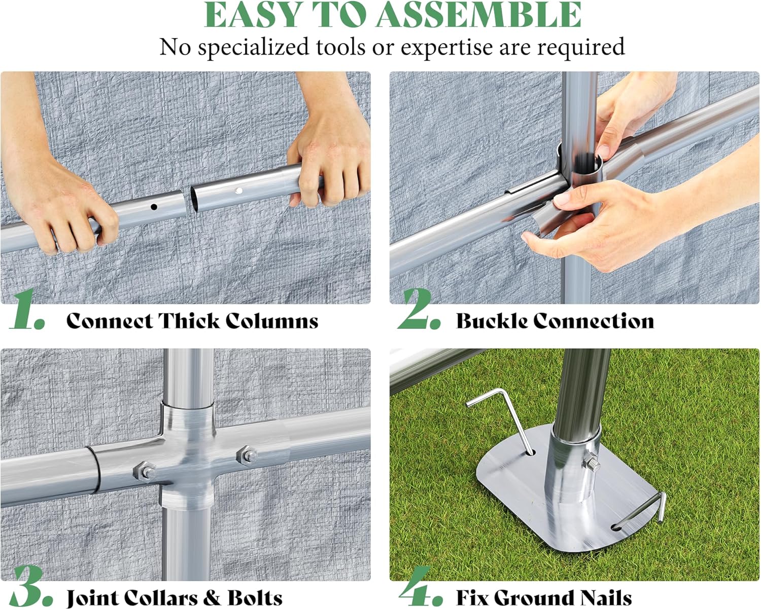 - Easy to Assemble: The storage tent is designed for easy assembly that includes all hardware and clear instructions. Multiple 3 or 4 way connection, no specialized tools or expertise are required
