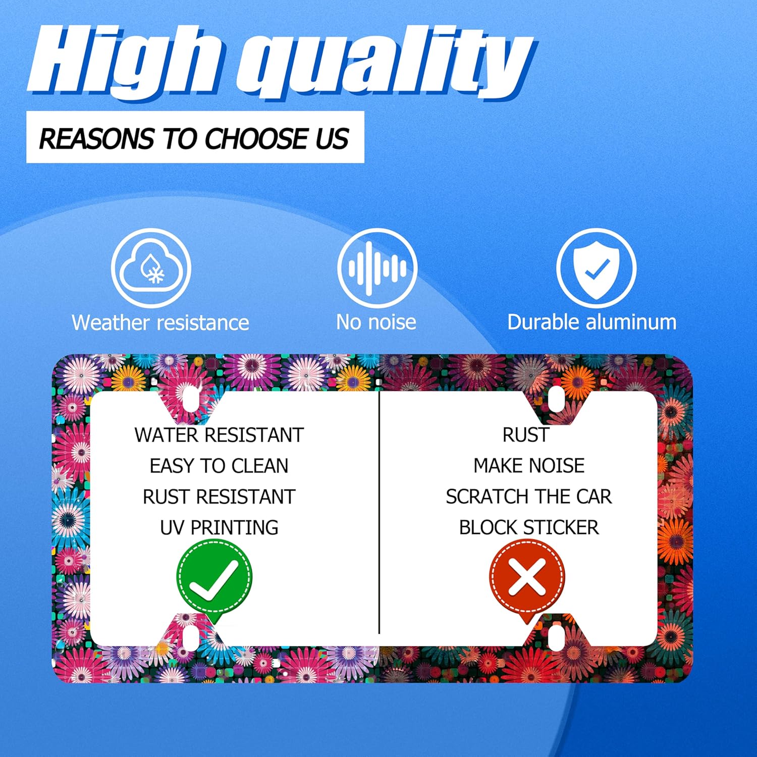 Abstract Hippie Flowers License Plate Frame Floral License Plate Stainless Steel Funny License Plate Holder Colorful Car Accessories With Screws Car Decoration 12.3" x 6.3" Fits Standard Vehicles Size