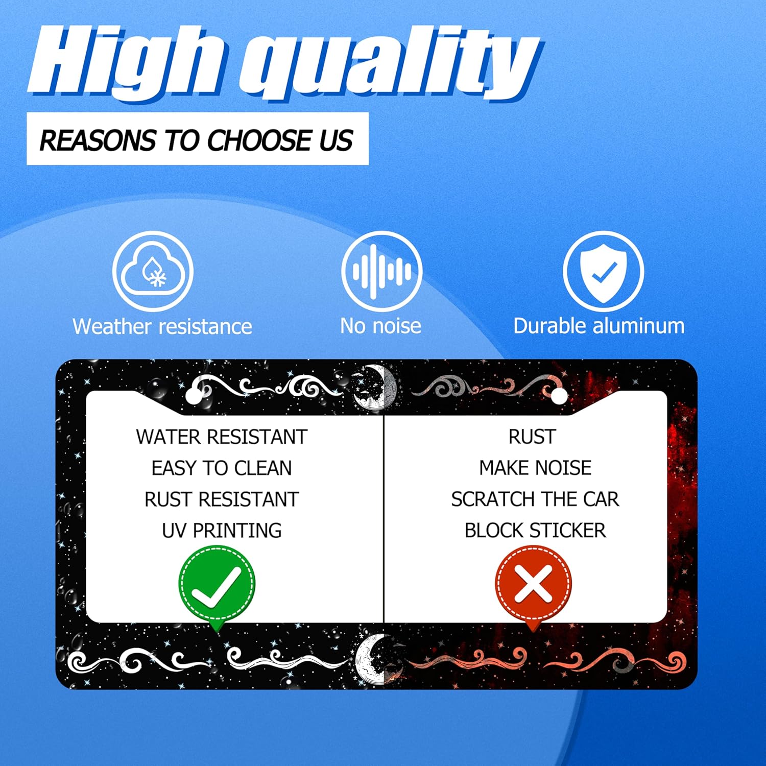 Moon License Plate Frame Stars Waves Starry Sky License Plate Stainless Steel Funny License Plate Holder Galaxy Car Accessory with Screws Car Decoration 12.3" x 6.3" for Men Women