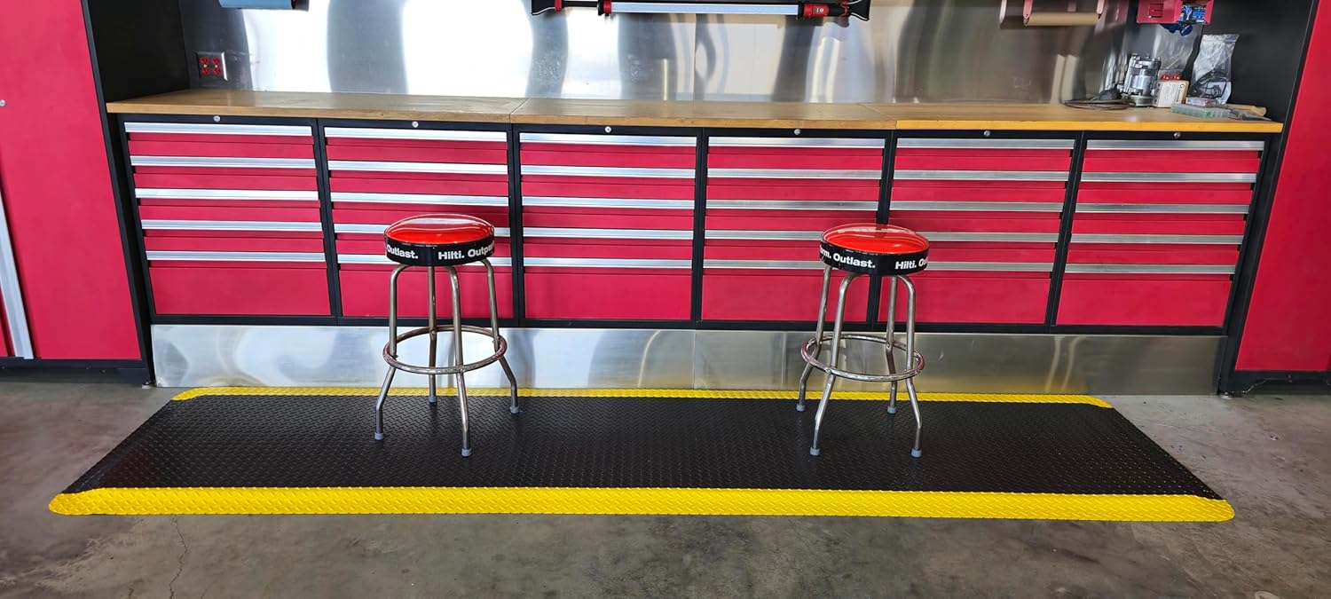 Rhino Mats, American Classic Diamond Anti-Fatigue Mats, Industrial Ergonomic Comfort Standing Mat for Work, Home, Garage, Office, Kitchen or Anywhere (Black/Yellow 1" Thick, 3 FT. x 10 FT.)