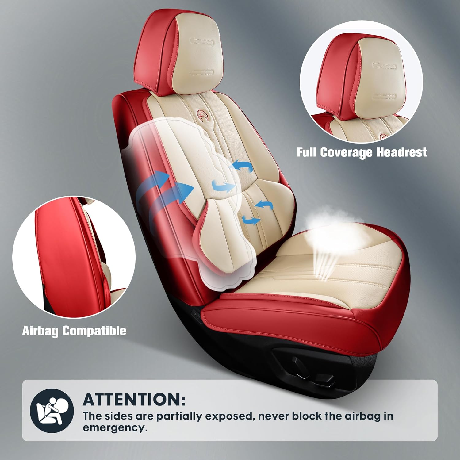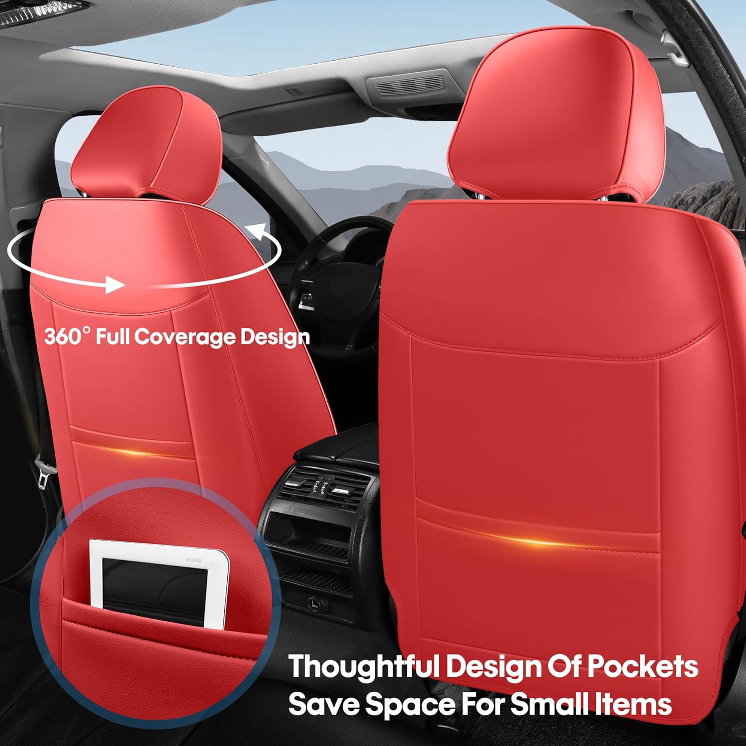 AOOG Front Seat Covers, Car Seat Covers Front Seats, Leather Seat Covers for Cars, Waterproof Seat Covers with Lumbar Support Universal Fit for Most Cars SUV Trucks(Front Pair, Red)