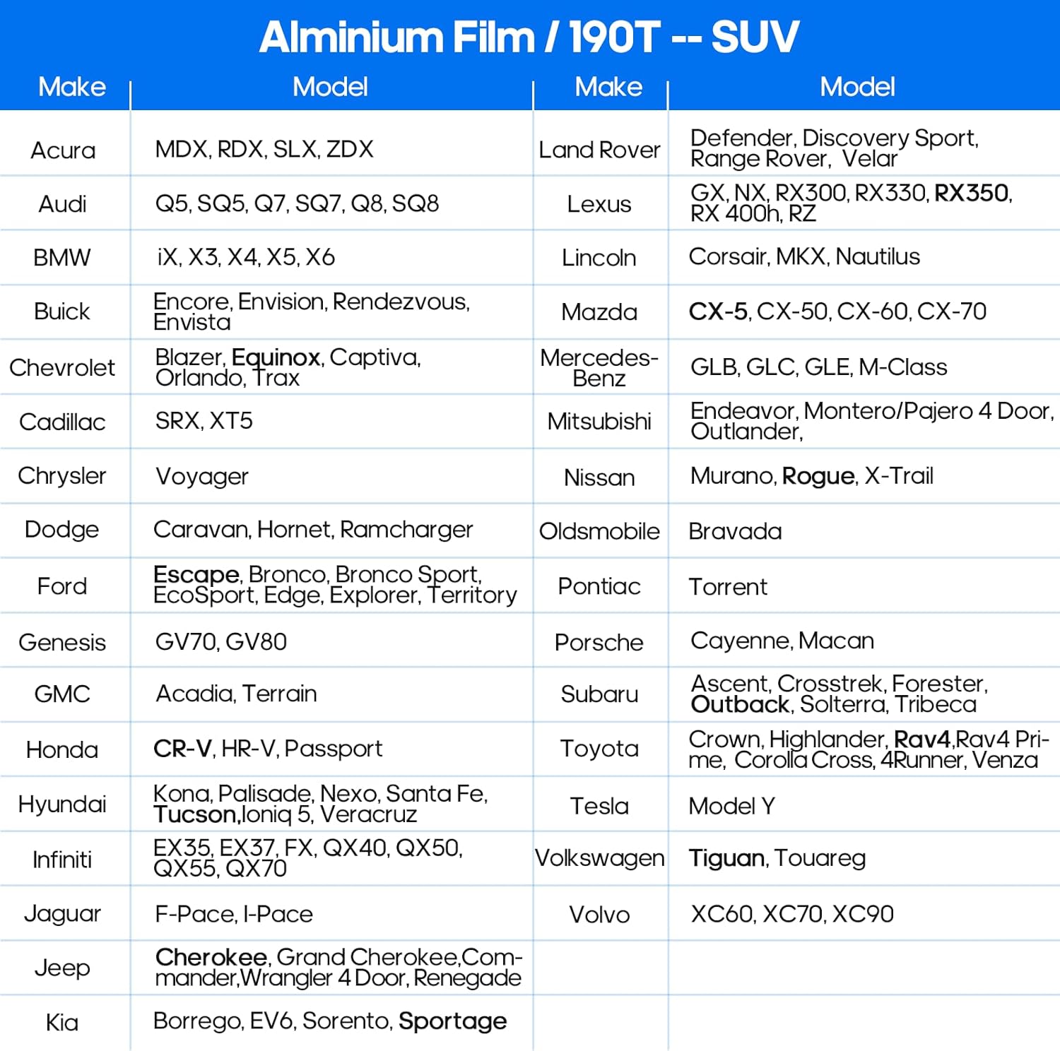 - Material Aluminium Film + High Resistance Spunlace Cotton Fabric Aluminium Film + High Resistance Spunlace Cotton Fabric See more : Vehicle Service Type Car, SUV