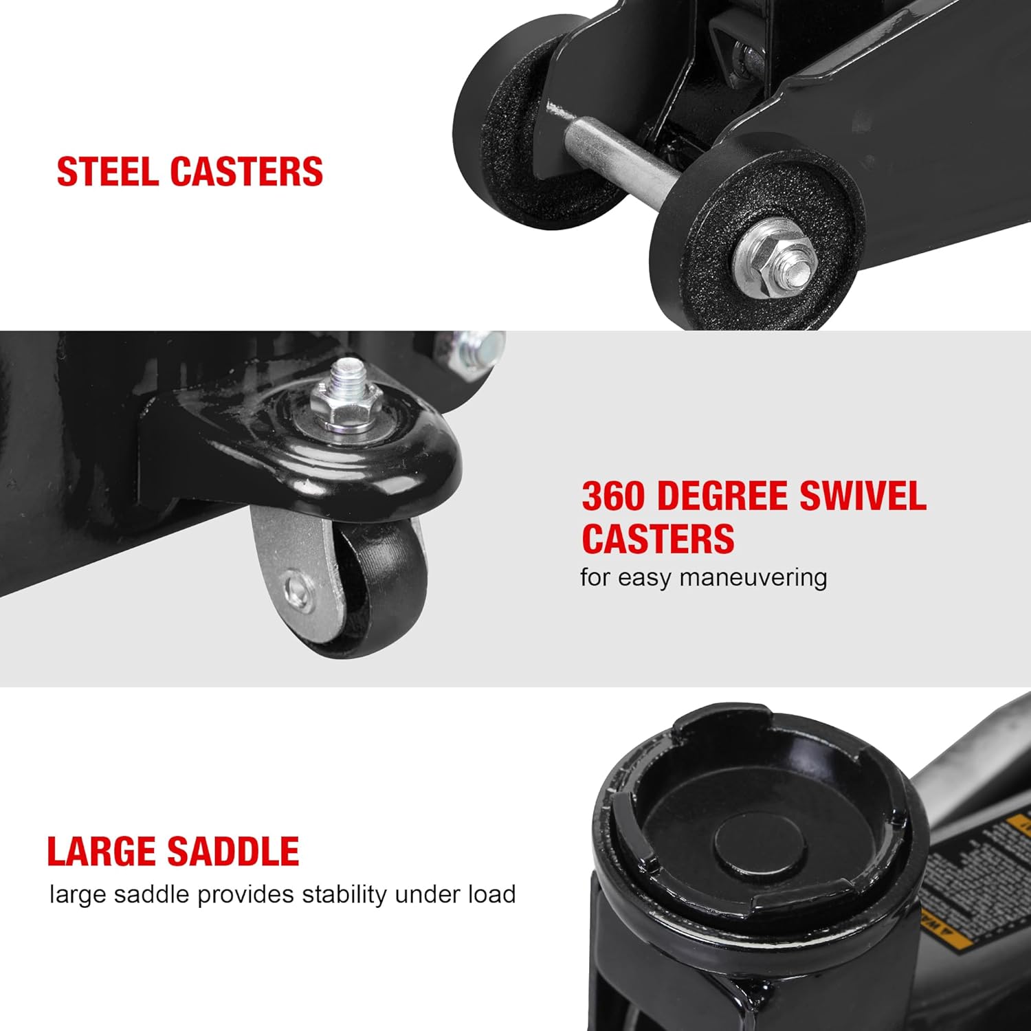 - Hydraulic trolley floor jack is constructed with heavy duty steel, providing long term durability with an industrial luster