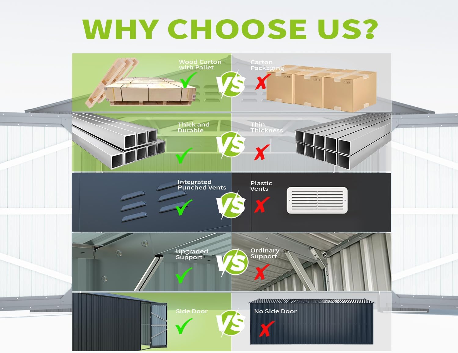 • ๐Ÿก๐Ÿ๐ŸŽ๐Ÿ๐Ÿ“ ๐”๐ฉ๐ ๐ซ๐š๐๐ž๐ ๐’๐ญ๐ซ๐ž๐ง๐ ๐ญ๐ก: Featuring a reinforced tubular steel frame and thickened galvanized panels, this large metal shed is built for durability. It offers superior resistance to rust, UV exposure, and moisture, while its robust structure is rated to withstand winds up to 50 MPH and snow loads of 20 lbs/ftยฒโ€”making it 40% stronger than standard sheet-metal sheds.