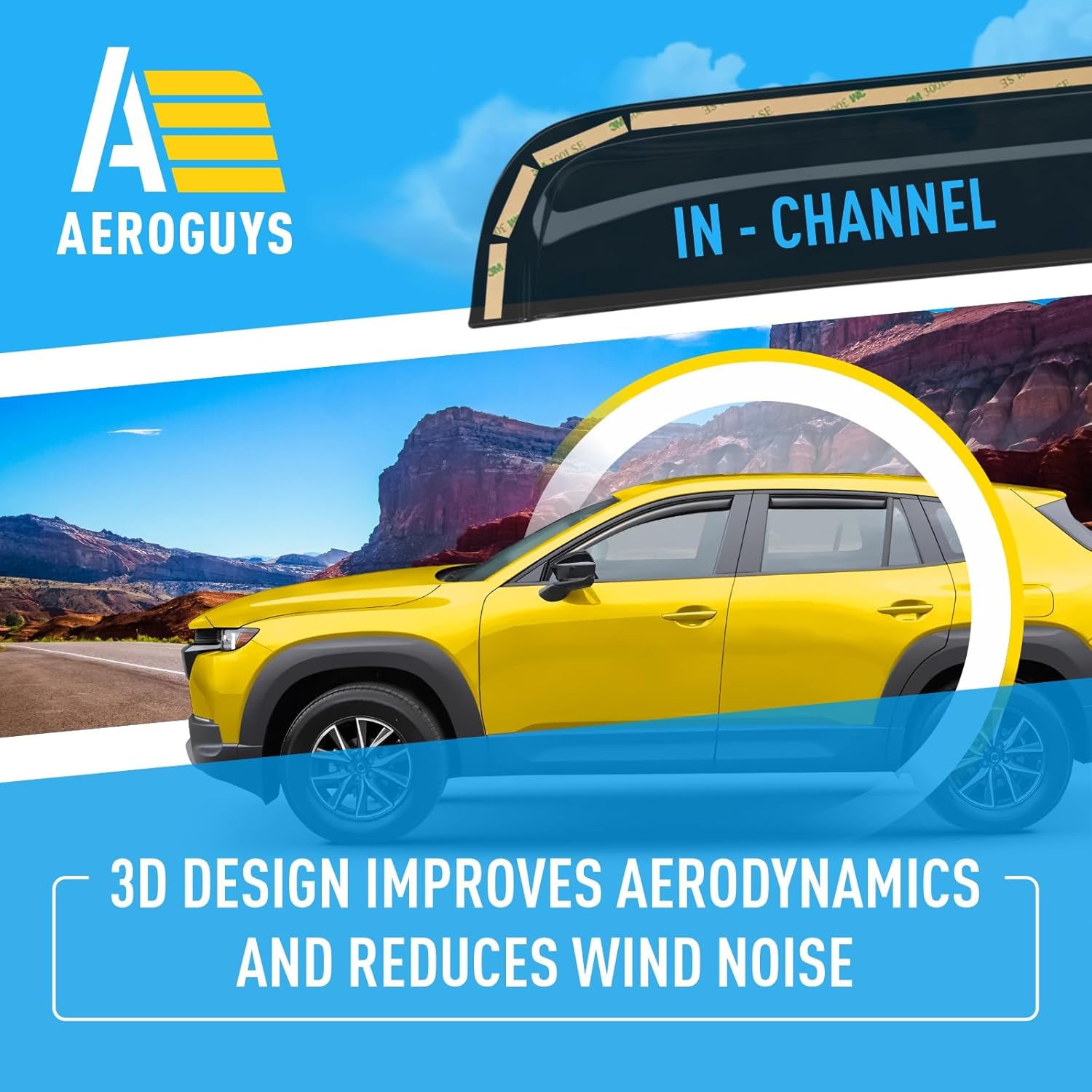 - No Tools Needed, Quick and Easy Assembly β These rain guards are very easy to fit. IN-CHANNEL INSTALLATION provides perfect fit for your car. Just slip it onto your carβs window and your job is done within minutes. There is no drilling or no tools required. Be sure that AEROGUYS window deflectors are water resistant, sun protective and will not bend, break or crack regardless of the weather conditions.