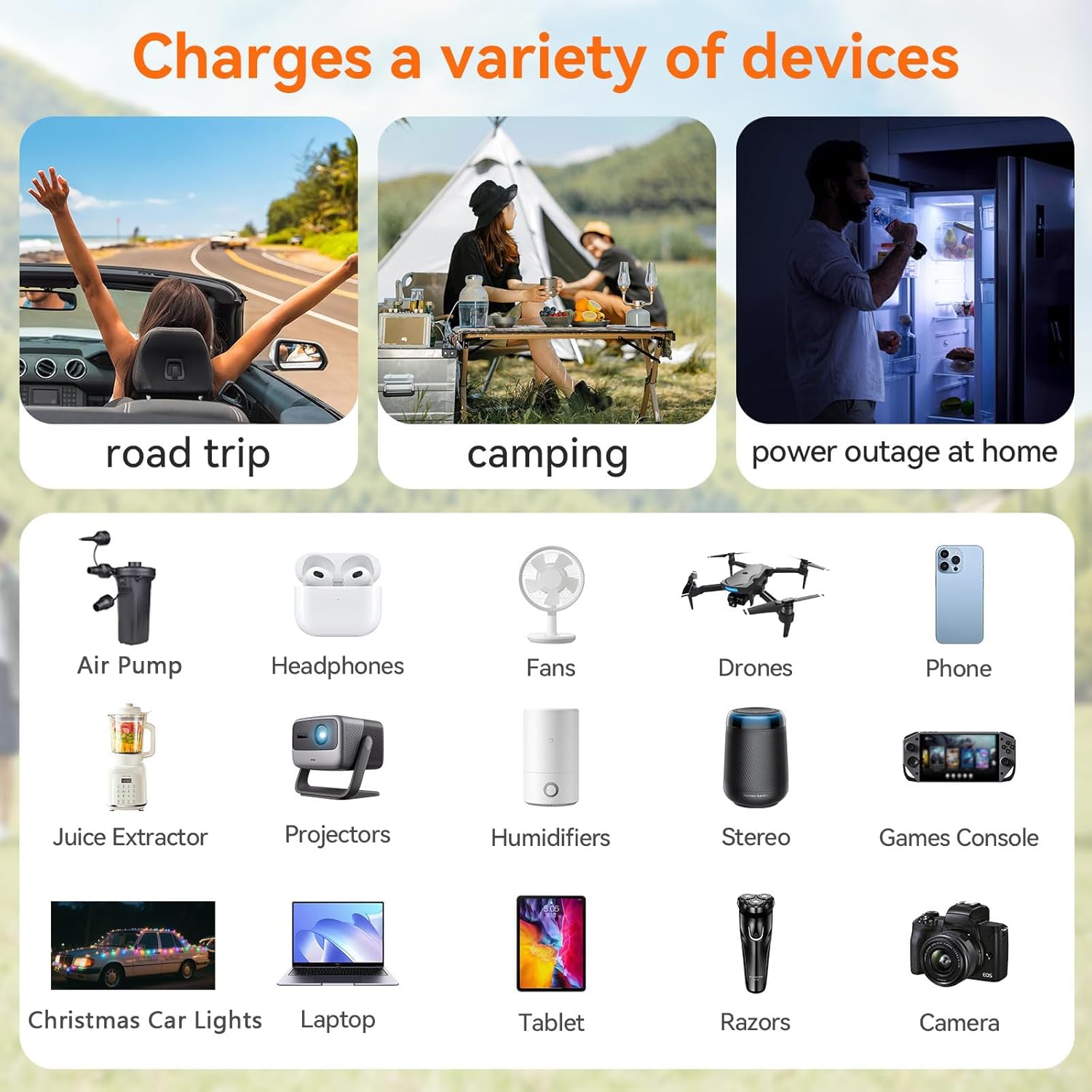 - 【Fast and Efficient Charging】Equipped with PD 27W USB-C and Fast Charger 18W USB-A ports, this power inverters for vehicles - can rapidly charge most phones and tablets (Max 3A total output). Additionally, the AC outlets are perfect for powering laptops, computers, game consoles, TVs, DVD players, and other electronic devices. With its high power output and fast charging capabilities, cigarette lighter adapter inverter - is an essential accessory for road trips, camping, or everyday use