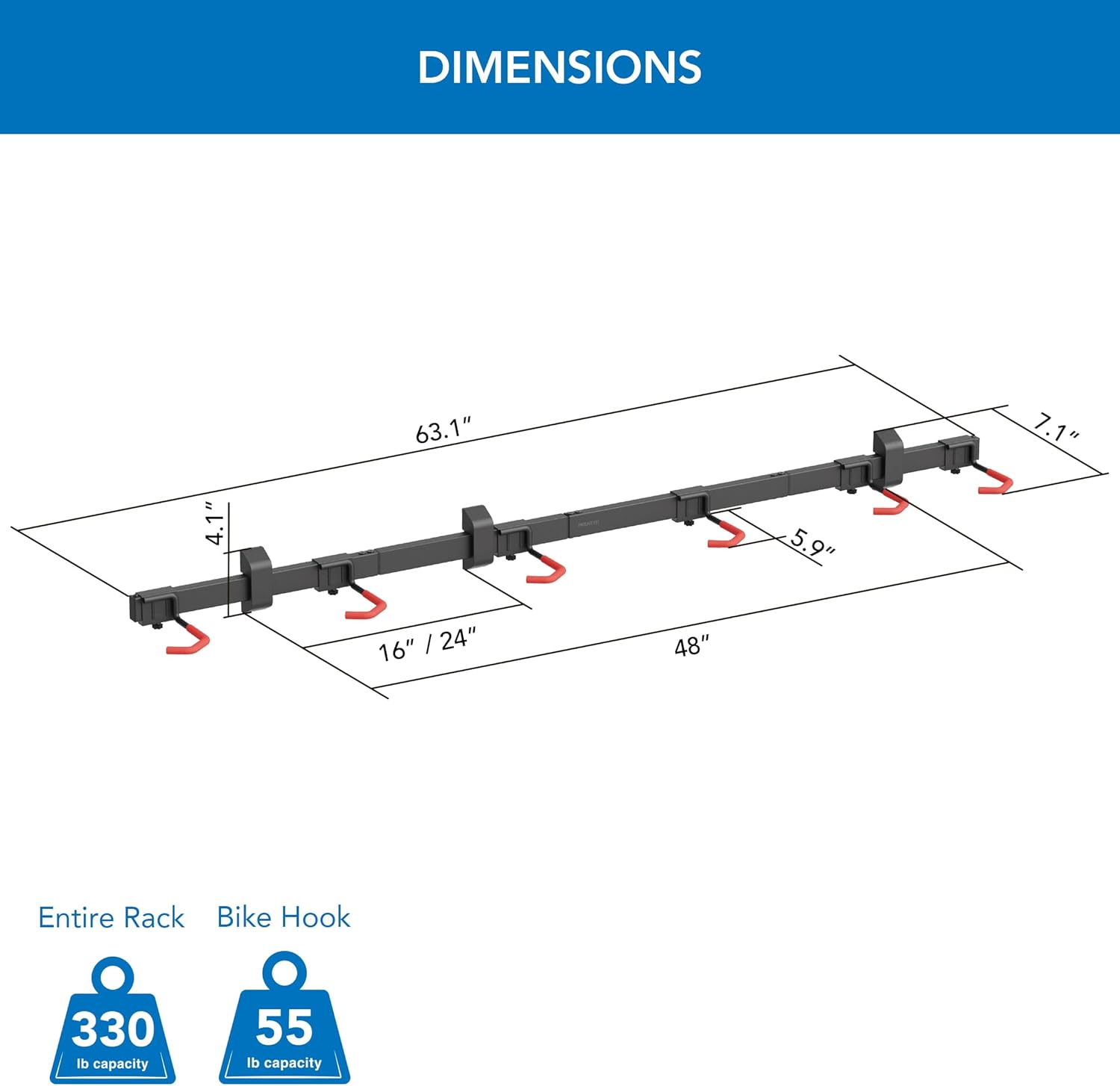 • ADJUSTABLE HOOKS FOR VERSATILE STORAGE – Customize the spacing to fit a variety of bike types. Each hook can move left or right, allowing perfect positioning for road, mountain, hybrid, and kid bikes.