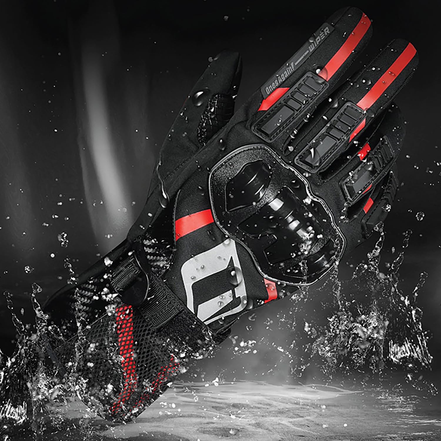 • Waterproof Construction: These motorcycle gloves are designed with a waterproof and windproof outer shell, ensuring your hands stay dry and protected in wet or snowy conditions.