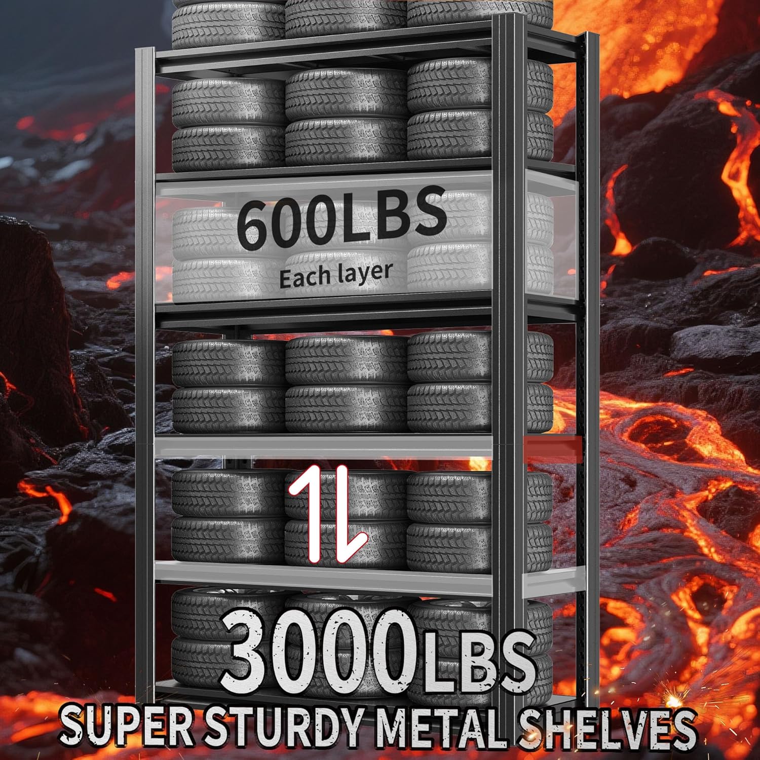 - ăHeavy-Duty CapacityăOur industrial garage shelving unit boasts a robust 2,500 lbs capacity, with each shelf supporting up to 500 lbs. Constructed from high-quality metal with reinforced double-layer legs, these multi-purpose garage storage shelves are designed to handle the toughest loads, making them ideal for garages, warehouses, and workshops.