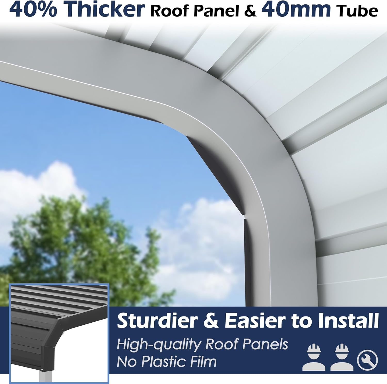 - 【Unique Galvanized Frame】The metal carport features a fully galvanized frame, giving it a distinctive silver appearance. Galvanized frames offer superior resistance to corrosion and provide a stronger surface, eliminating concerns about peeling or scratching common with powder-coated frames