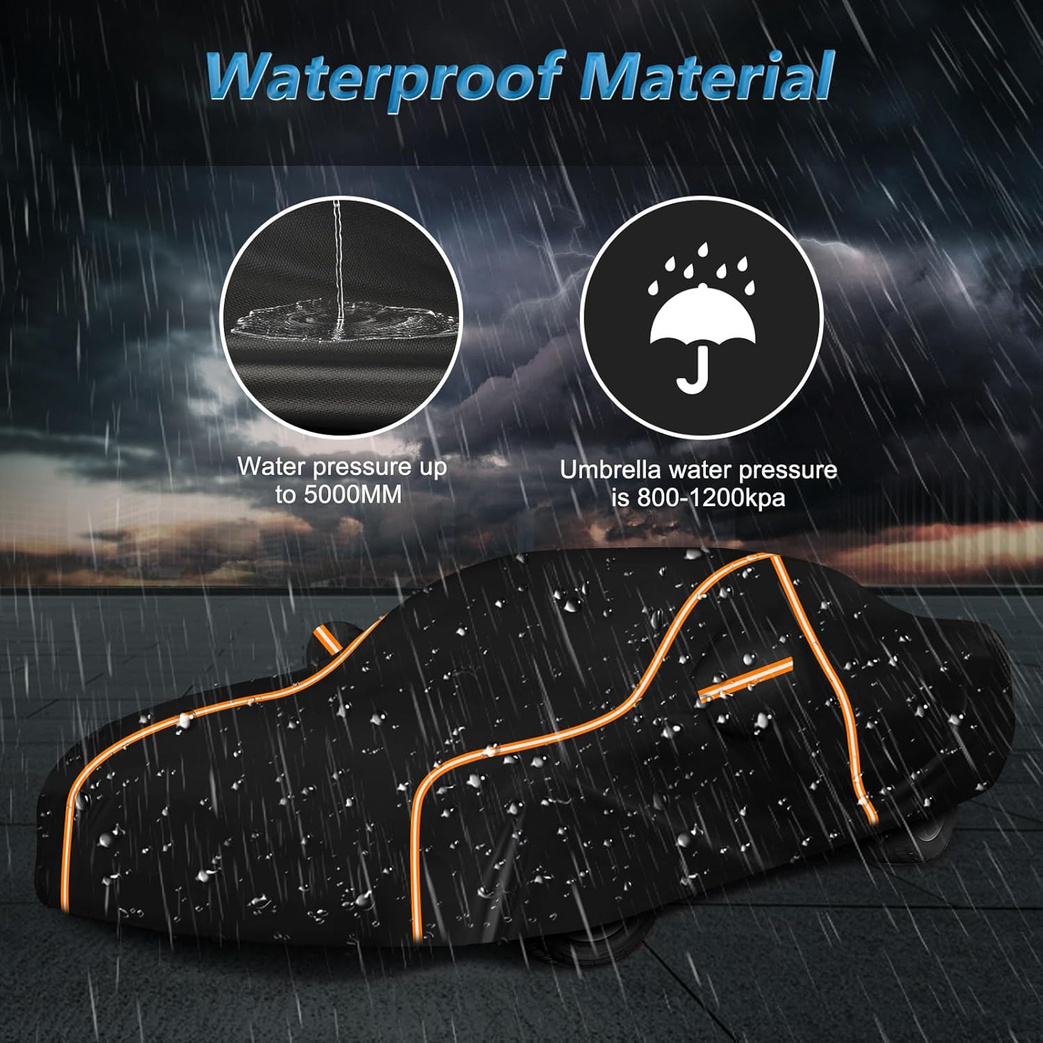 - ăAll-Weather ProtectionăMade black 210D Oxford cloth and cotton and PU waterproof fabric as material, ensuring its quality is tough, durable, and safe in strong wind conditions. Suitable for all weather and seasons. Protects your vehicle and paint from rain, snow, sun, bird droppings, pollen, dust/dirt - suitable for all seasons (spring, summer, fall, winter).