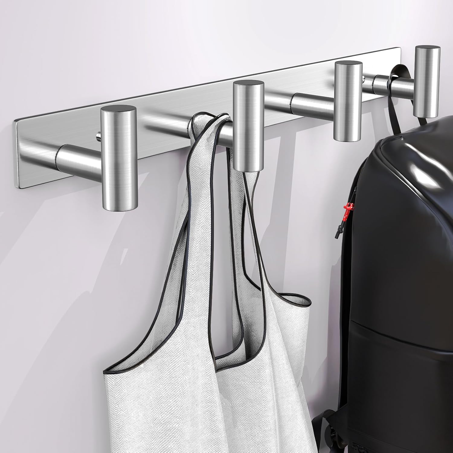 - [Premium Stainless Steel Construction]-Crafted from high-grade stainless steel, our wall-mounted coat rack is built to withstand daily wear and tear. Its rust-proof and moisture-resistant properties ensure long-lasting performance, making it a reliable choice for any room in your home or office. ăImportant Noteă-To protect the surface of our hooks during shipping, each base is covered with a blue protective film. After you receive your order, please peel off the film to reveal the shiny silver base underneath!