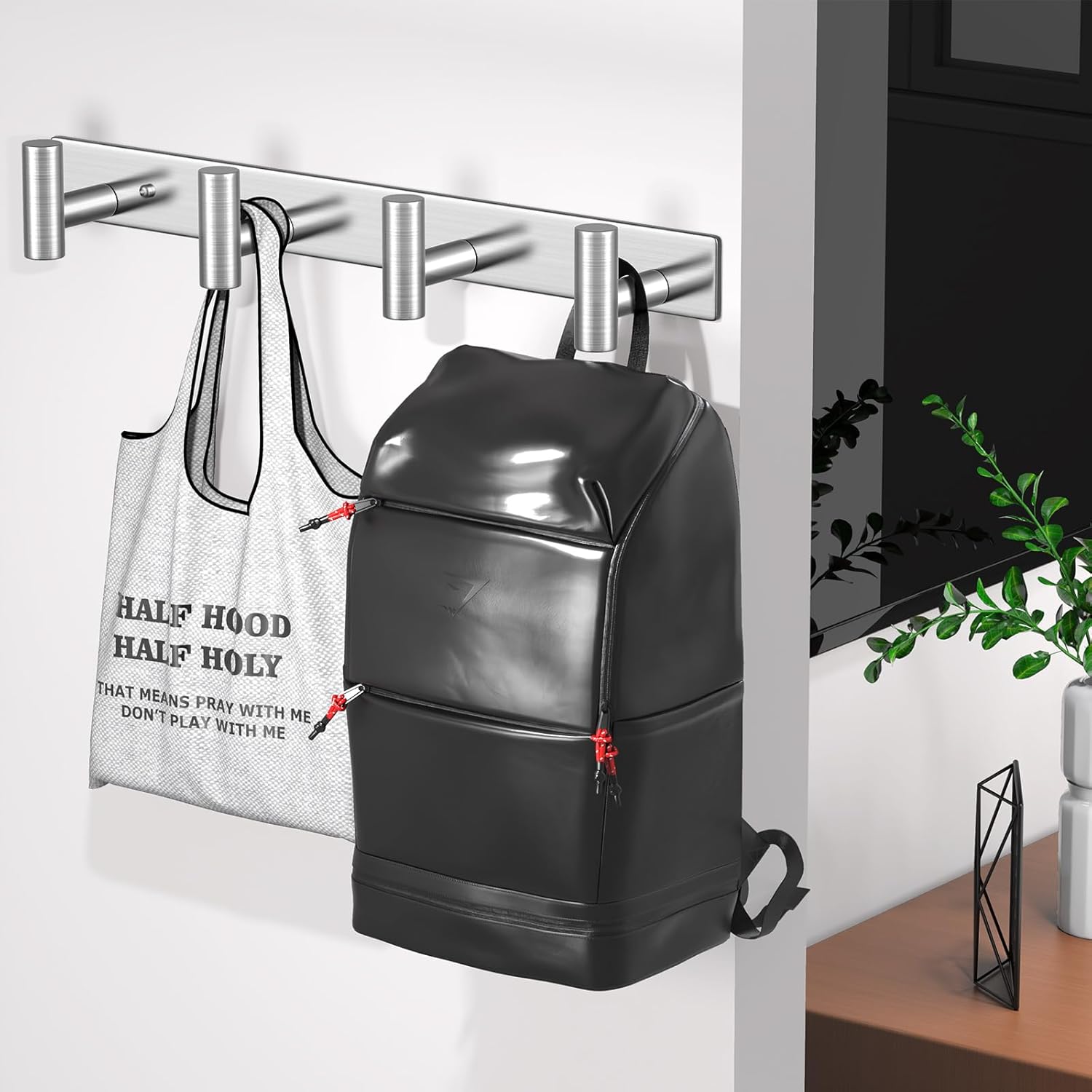 Wall Mounted Coat Rack-4 Hooks, Heavy Duty Stainless Steel Hook Rail for Towel Coat Hat Purse Bag Jacket, Towel Hooks for Entryway Bathroom Kitchen (Silvery 4 Hooks - 1 Pack)