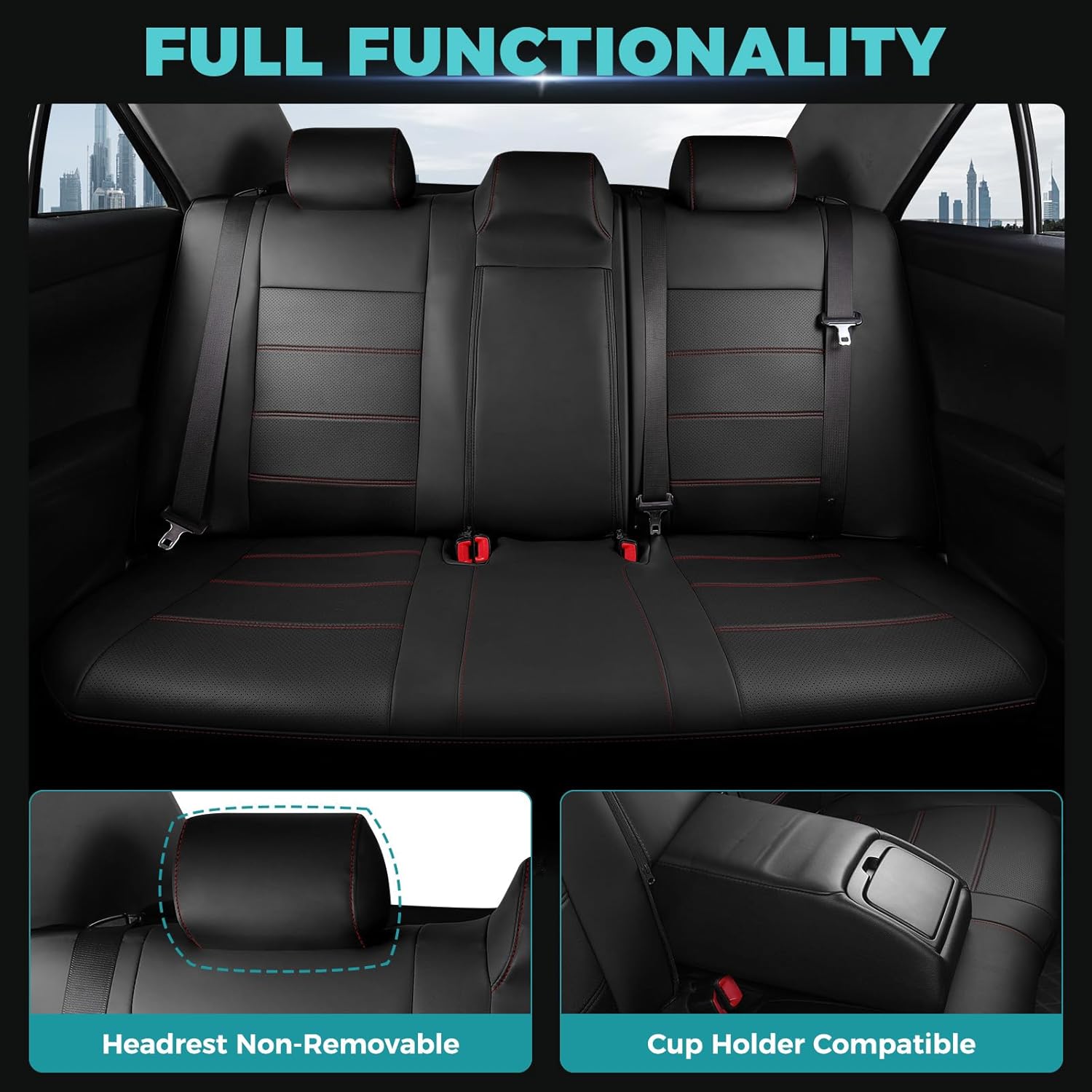 - ăMaintain Existing Functionalityă: Tailored to fit snugly all details of car seat covers for Toyota camry and ensure the full function, not affecting at all the use of airbag, armrests, safety belt, child seats and seat adjustments. full wrap front car seat covers come with seat back organizer for improved user convenience.