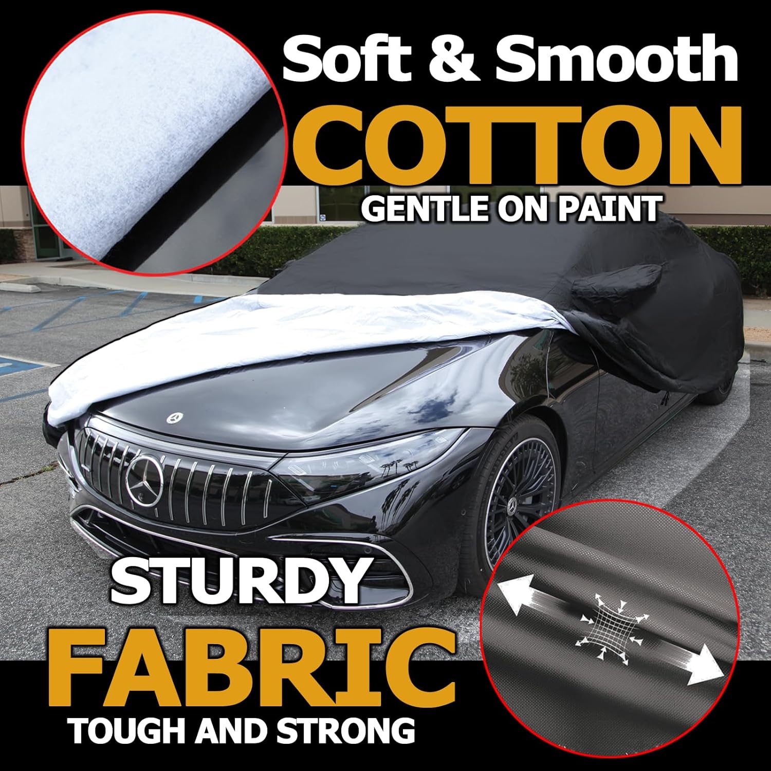 - 100% Soft Cotton Fabric Against Scratch: Cotton fabric lining which is very soft, smooth, abrasion resistant that safe and gentle to paintwork. XtremeCoverPro Car Covers are made from a premium material. High-Grade protection fabric repels moisture with a soft anti scratch lining keeps your car clean.