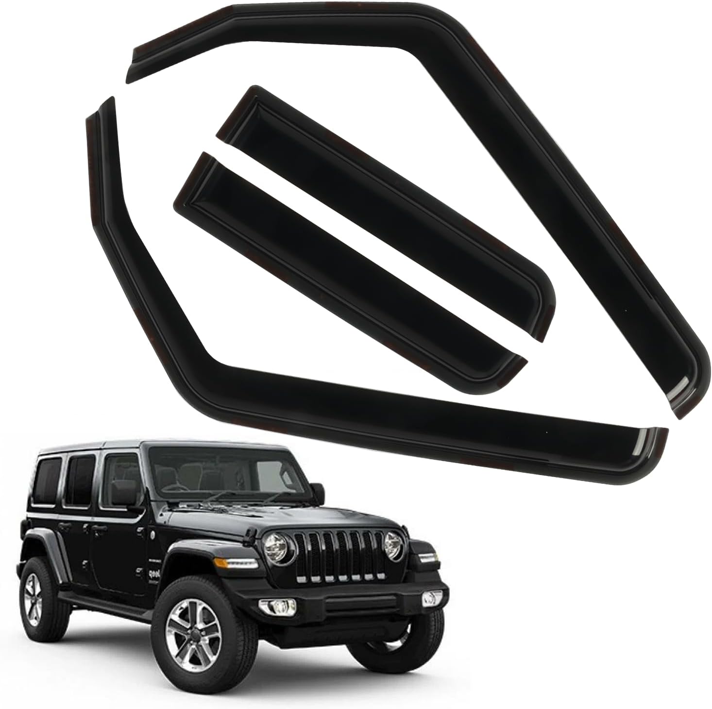 in-Channel Rain Guards Fit for 2018-2025 Jeep Wrangler JL/Gladiator 4-Door 2020-2025, Durable Vent Window Visors Shade, Side Wind Deflectors, 2019 2020 2021 2022 2023 2024