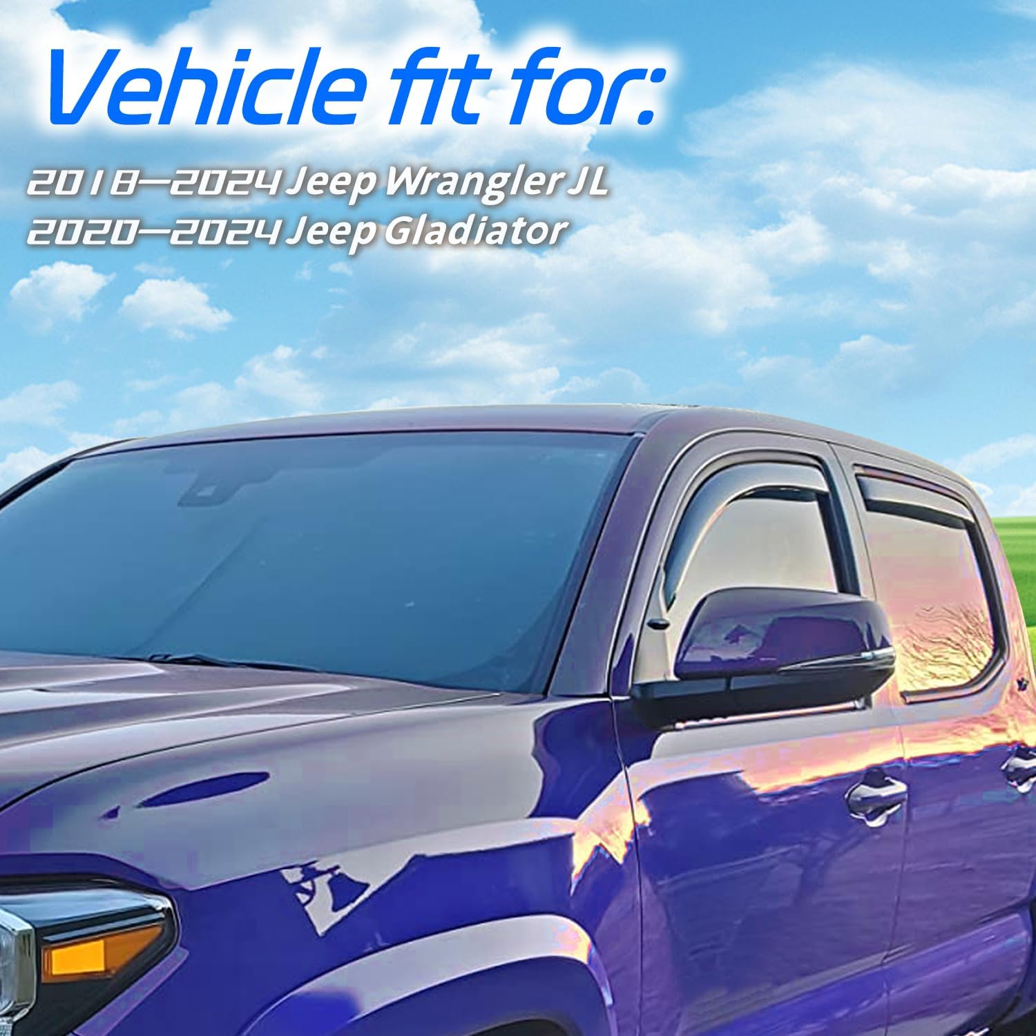 - ăVehicle Fitmentă CHYKORLA Vent Window Visor CUSTOM ONLY compatible with Jeep Wrangler JL 2018-2025, Jeep Gladiator 2020-2025