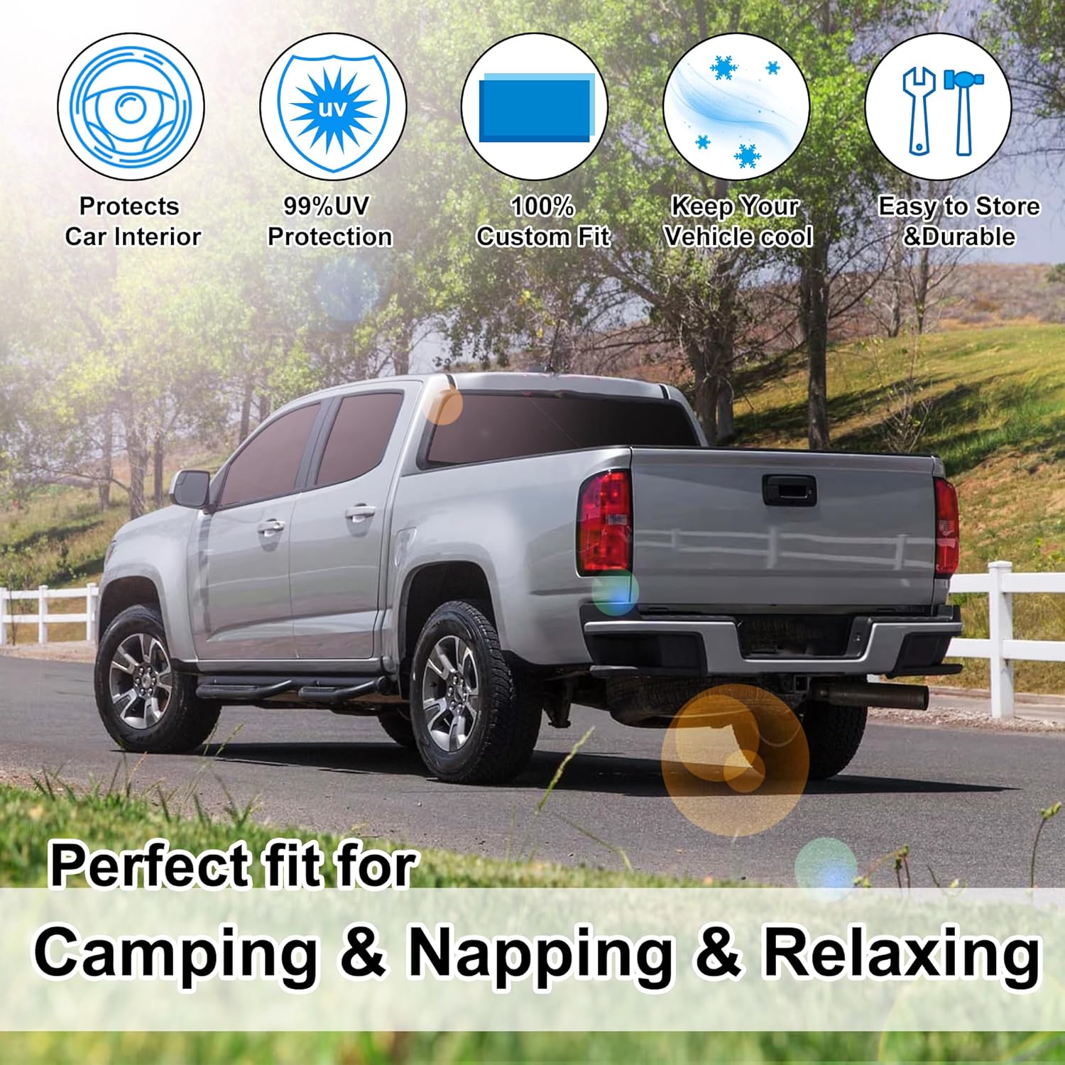 - Customized Design:The sun shade custom fit for Chevrolet Colorado Pickup Truck 2015-2022.Our window shade is according to the car size design,perfectly fit your car and does not need to trim.windshield sun shade solve the problem of light leakage and incompatibility of the old umbrellas.The sunshade designed for Chevrolet Colorado Pickup Truck.