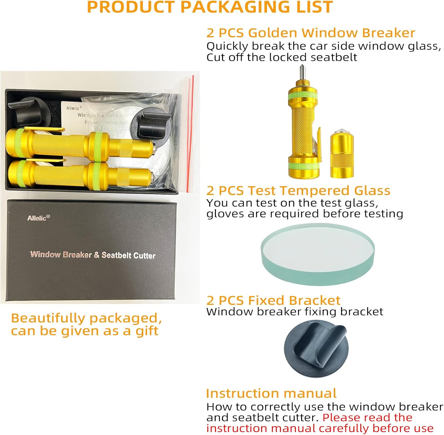 - Excellent Service: The product has been rigorously tested to ensure product performance. We provide you with excellent after-sales service to ensure that you can buy the car glass breaker