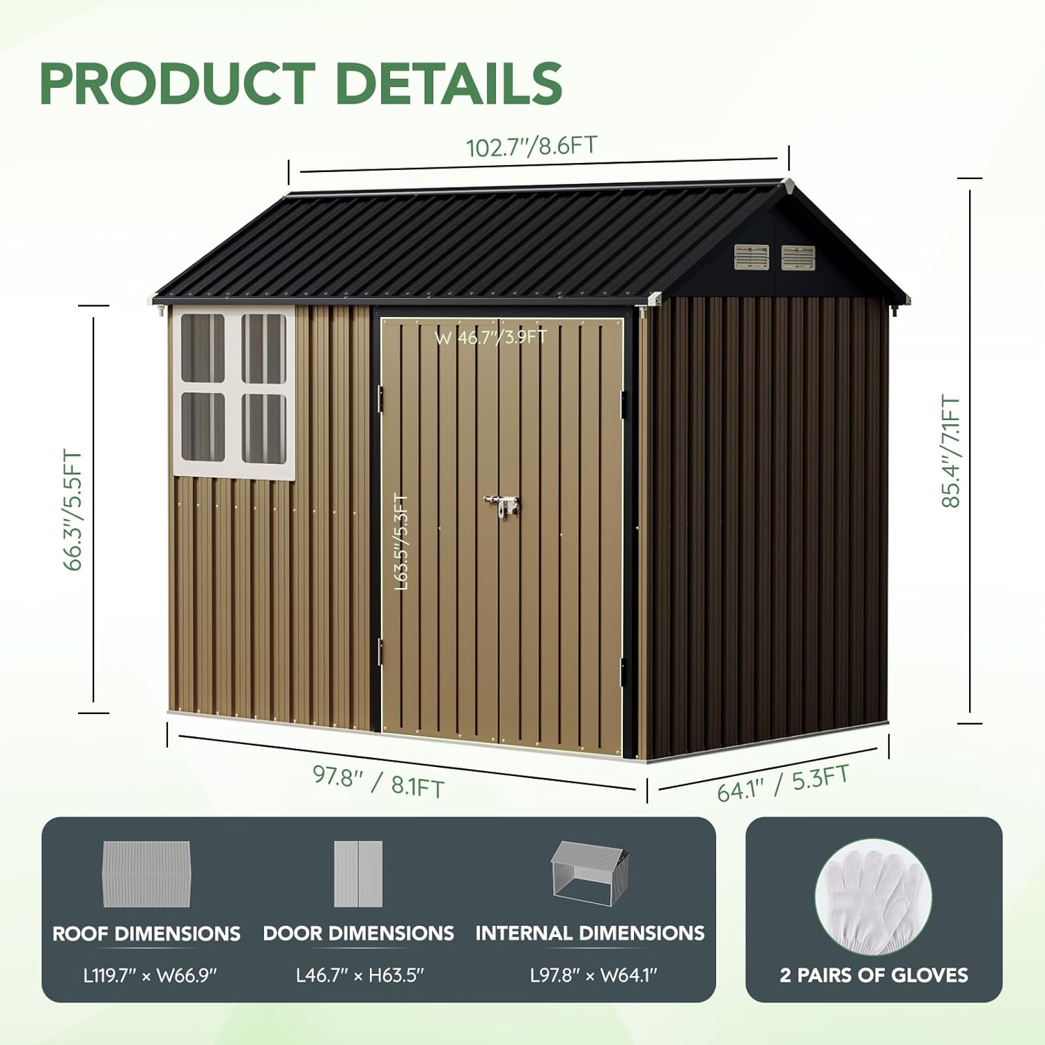 - Enhanced Durability: Constructed from high-quality galvanized steel, this storage shed is designed to withstand the elements. The frame floor adds extra stability, ensuring your shed stands strong against wind and weather.