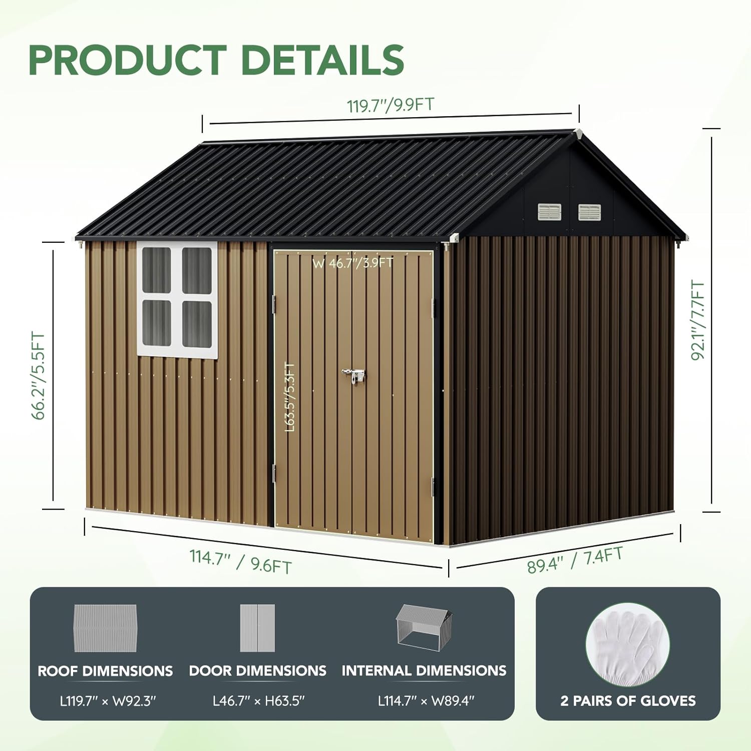 - Enhanced Durability: Constructed from high-quality galvanized steel, this storage shed is designed to withstand the elements. The frame floor adds extra stability, ensuring your shed stands strong against wind and weather.