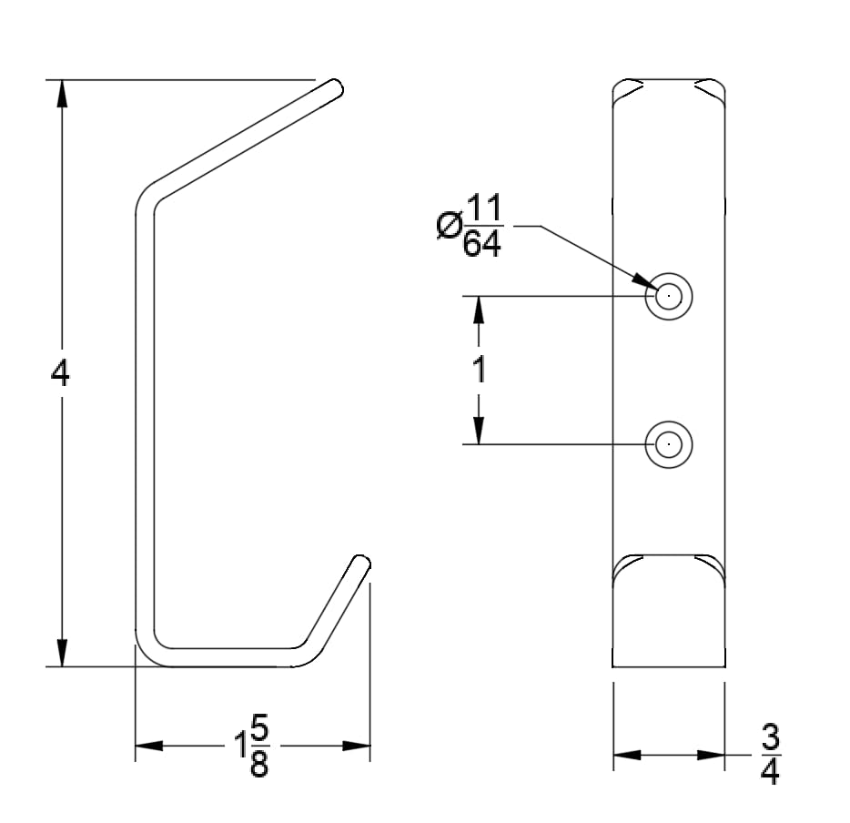 - Dimensions Single Hook: 2.5" x 1.5" deep x 0.75" wide Double Hook: 4" tall x 1.5" deep x 0.75" wide