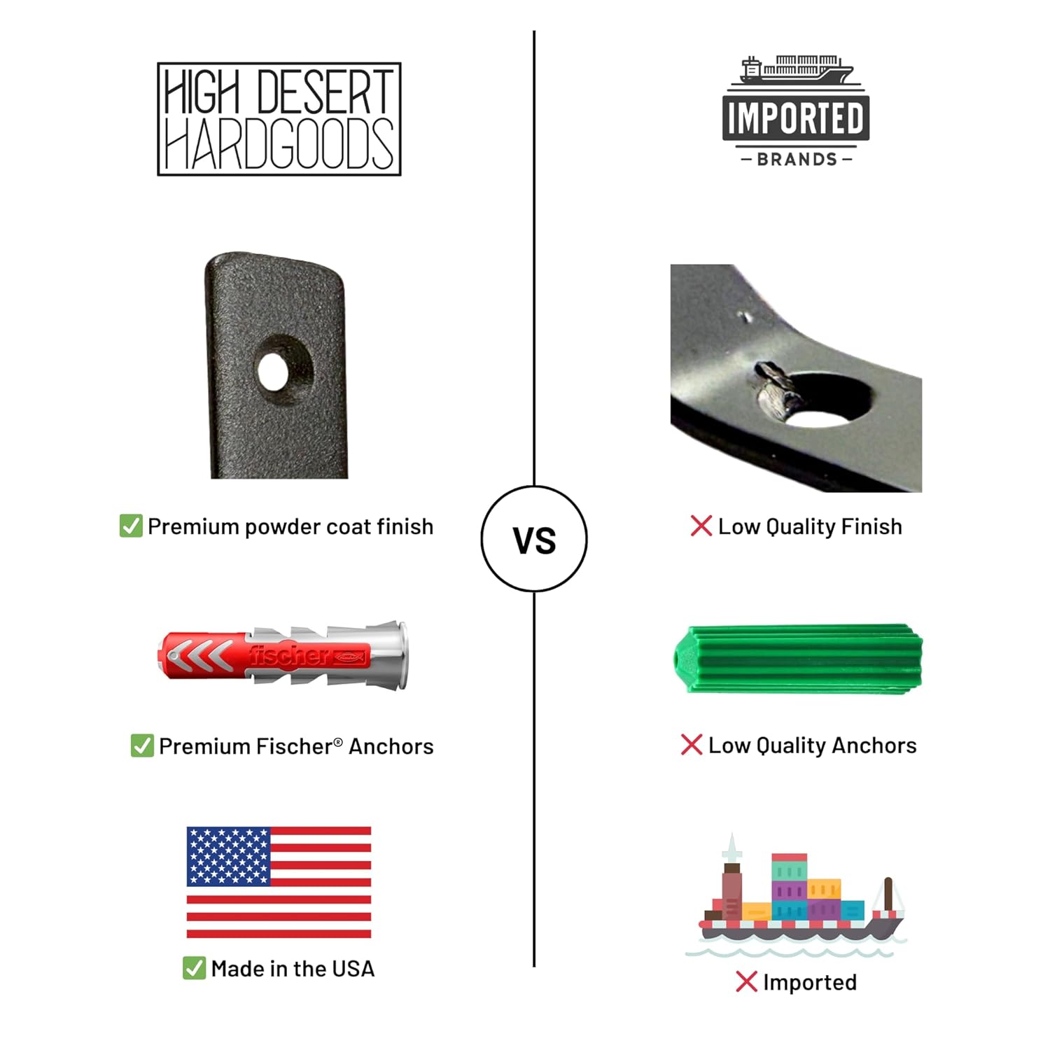 - American Made Excellence - These wall hooks are crafted in the USA from high-strength steel that outperforms imported alternatives. The substantial thickness and professional-grade fine texture powder coating create a beautiful finish that resists scratches, rust, and daily wear for years of reliable service.