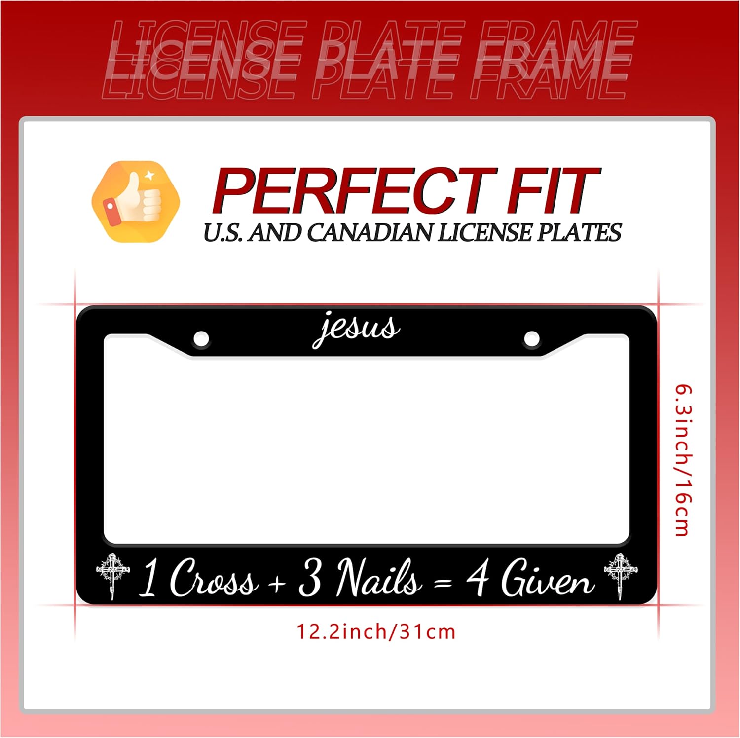Personalized License Plate Frame Jesus 1 Cross + 3 Nails = 4 Given Stainless Steel Accessory Holder Funny Car Decorative 2 Holes Screws Fits Us Standard License Plates 12.2 X 6.3 in for Men Women