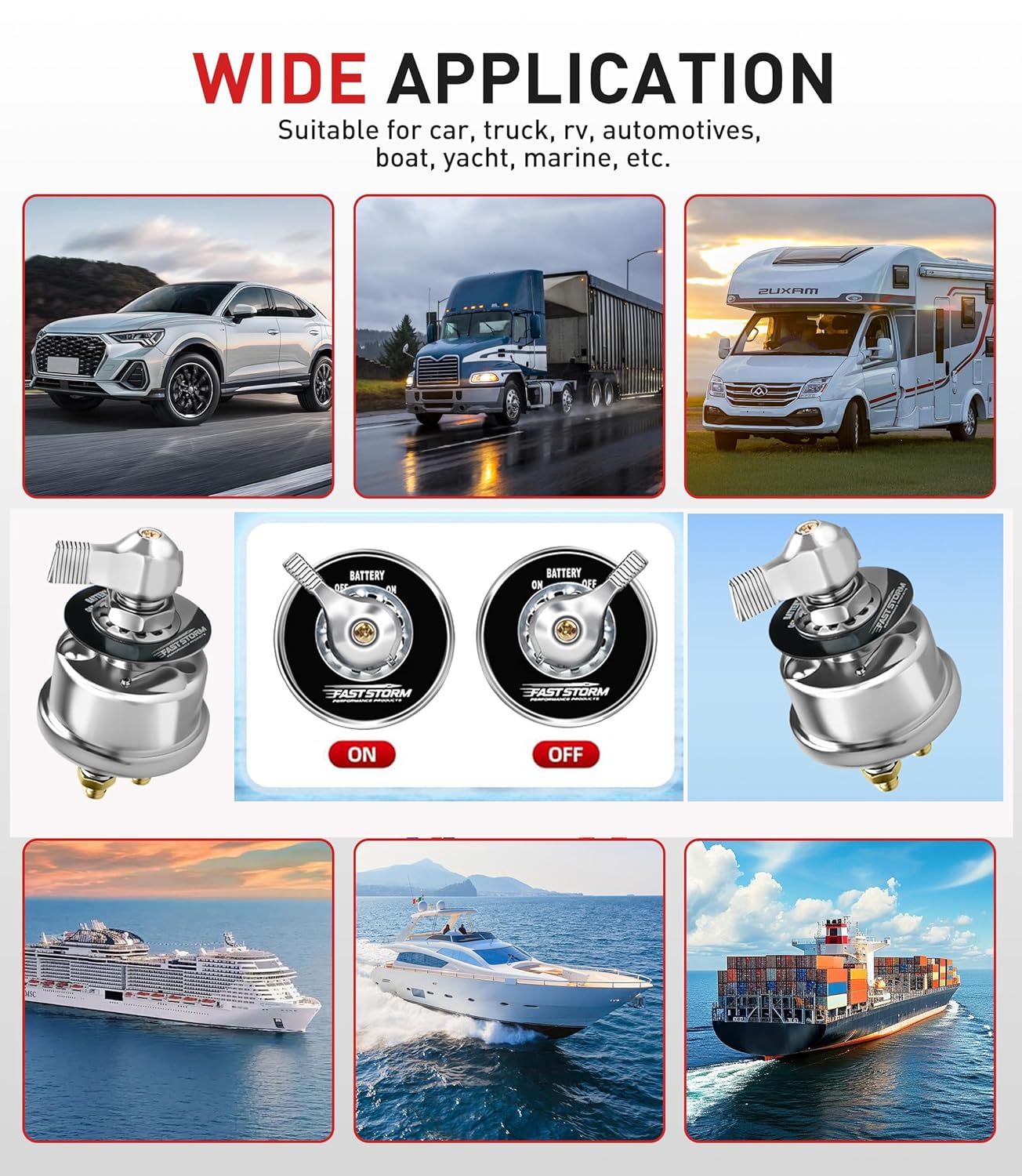 - ăZero-Noise Safety Guardiană Our 12V battery disconnect switch used for 12-48 VDC systems to isolate and secure the electrical system, operates silently with no humming or buzzing, ensuring peace of mind while maintaining ultimate protection. It instantly cuts power to prevent battery drain, electrical fires, and accidental discharge â perfect for cars, RVs, boats, and solar systems