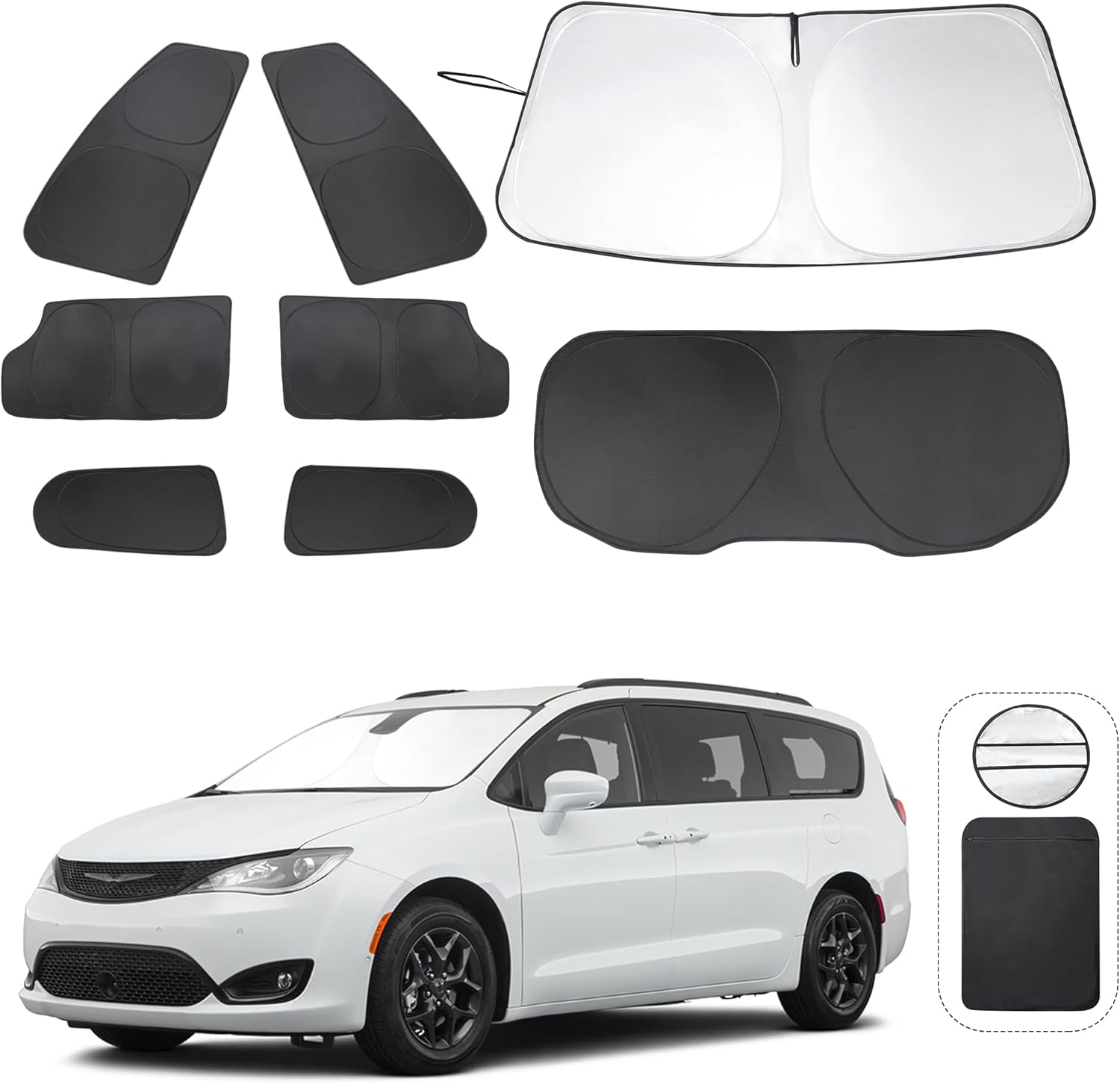- Customized Design:The sun shade custom fit for Chrysler Pacifica Minivan 2017-2025.Our window shade is according to the car size design,perfectly fit your car and does not need to trim.windshield sun shade solve the problem of light leakage and incompatibility of the old umbrellas.The sunshade designed for Chrysler Pacifica Minivan 2017-2025.
