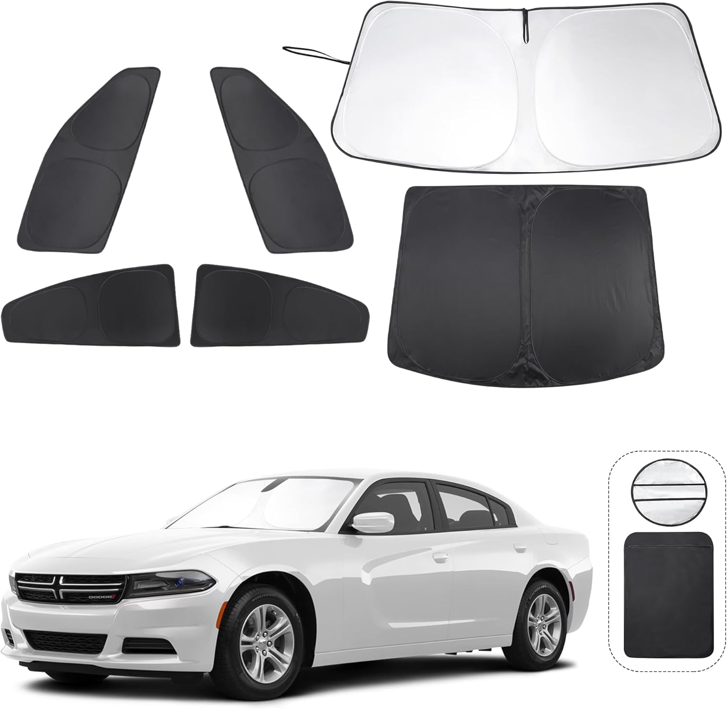 - Customized Design:The sun shade custom fit for Dodge Charger 2011-2023.Our window shade is according to the car size design,perfectly fit your car and does not need to trim.windshield sun shade solve the problem of light leakage and incompatibility of the old umbrellas.The sunshade designed for Dodge Charger 2011-2023.