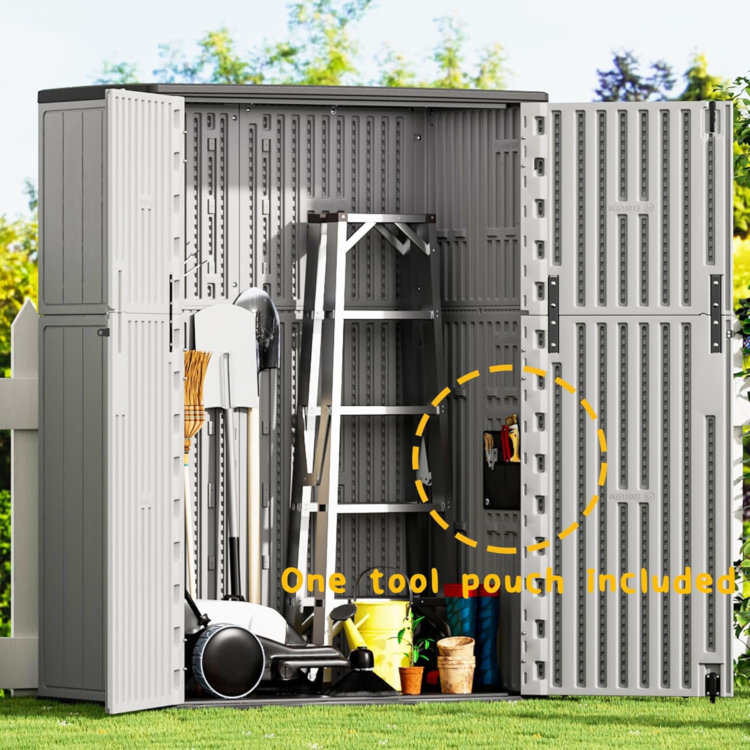 Plastic Outdoor Storage Cabinets,Vertical Sheds&Outdoor Storage with Floor,Outdoor Storage Box Waterproof/Lockable for Garage,Bike,Tools Storage Shed (57Cu.ft-Pale Grey)