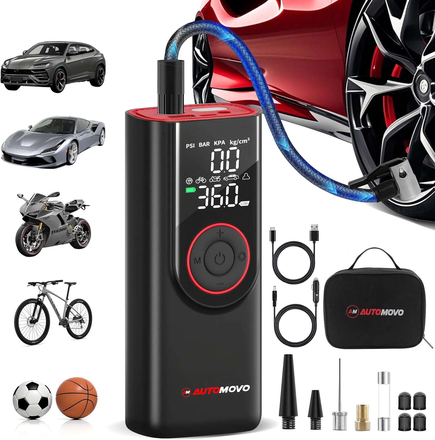 - Air pump comes with tire inflator*1, connecting air hose*1, atmospheric nozzle*1, stingy mouthpiece*1, French adapter*1, ball needle*1, fuse wire*1, DC power cord*1, USB charging cable*1, user manual*1, valve stem caps*4 and storage bag*1. If you have any questions or concerns, please contact us!