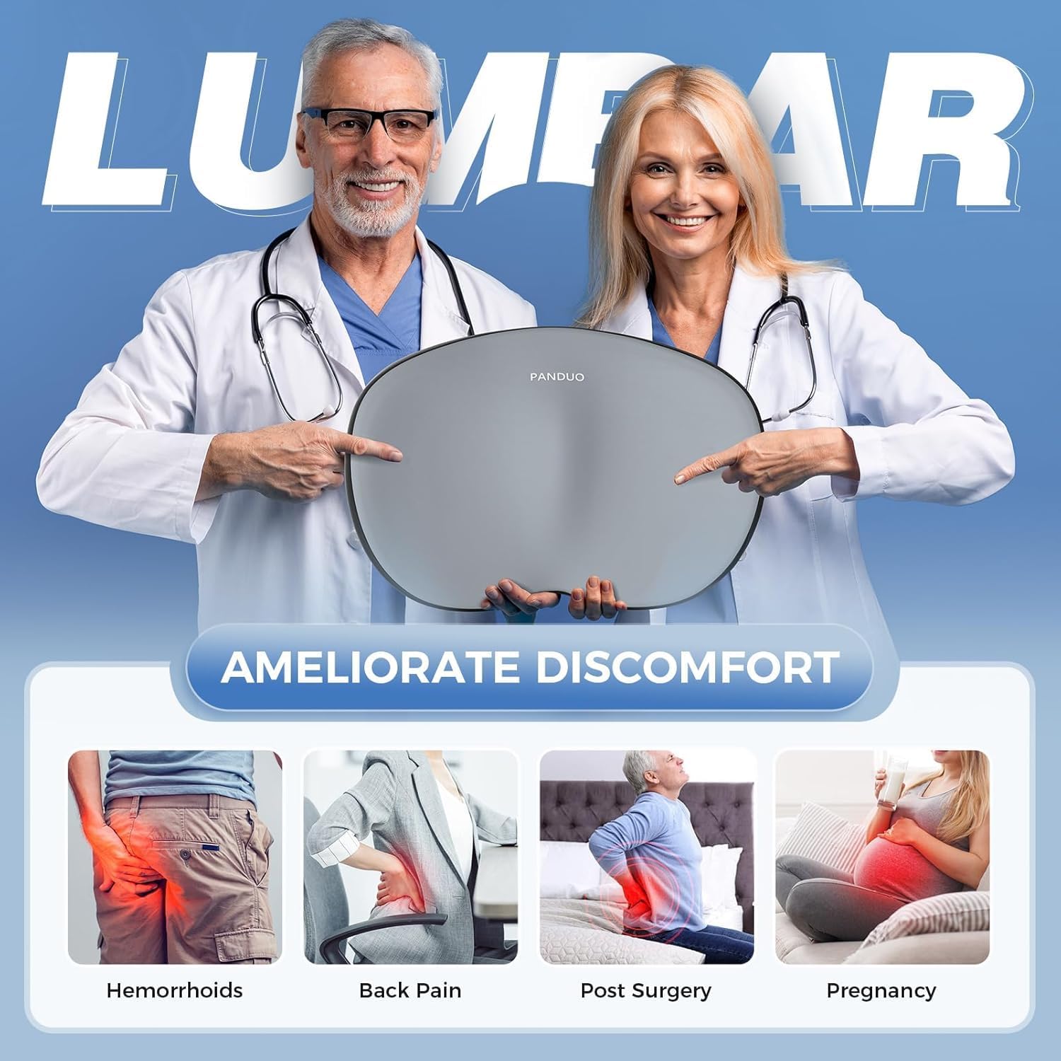 Lumbar Support Pillow for Office Chair, Memory Foam Lumbar Pillow for Lower Back Pain Relief (Grey