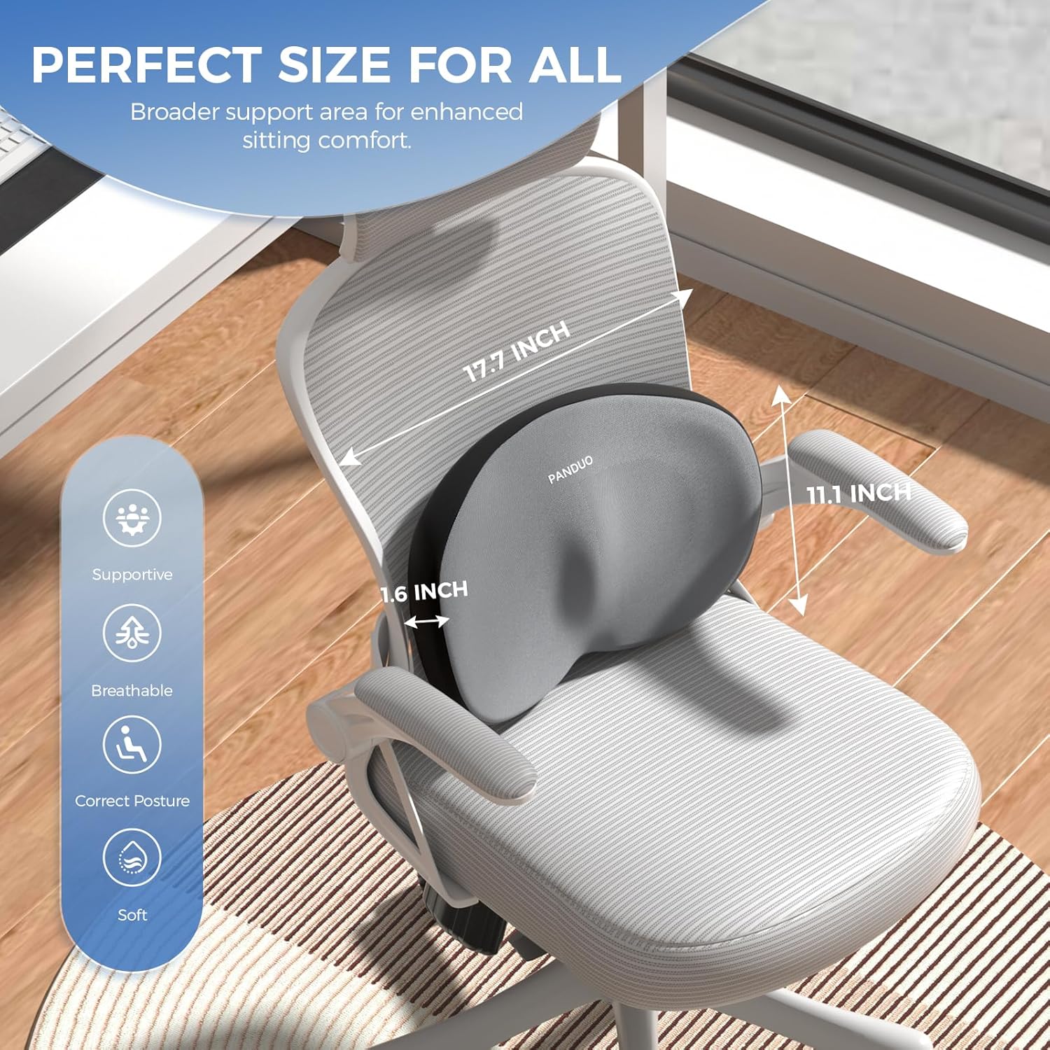 - Cushiony and Breathable: The 4D air-cool mesh on the lumbar pillow cover is highly breathable for comfortable contact. Also, the quality memory foam inside absorbs shock during driving and perfectly fits the human spine curve and offers cushion & comfort to your waist no matter you sit or lay.