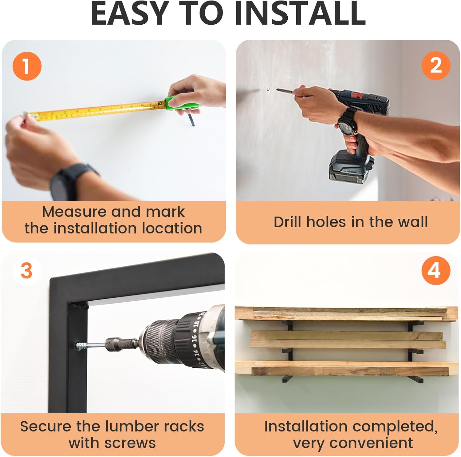 - [Easy Installation]Leekimid wood organizer rack comes with clear instructions and all mounting screws, and can be easily installed with just a drill and level. Its DIY installation program ensures you can easily complete the installation for your garage storage needs. Note: A wooden wall needs to be drilled first, and then self-tapping screws into the hole, please read the installation instructions before installation.